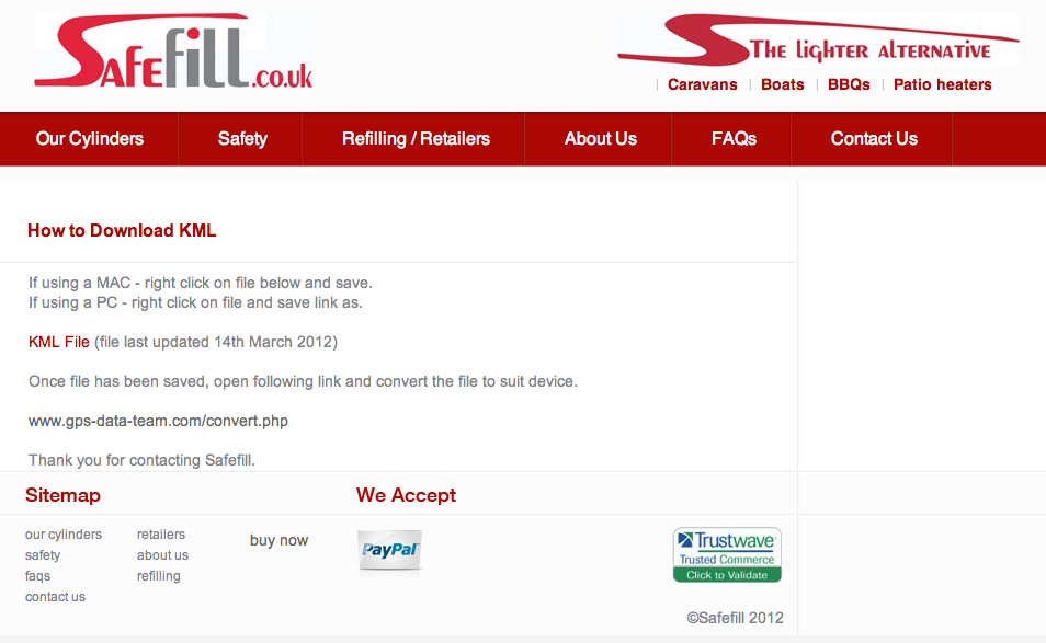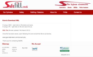 Well, I think they did! OK what am I on about? Well, if you have read through my ramblings about the Safefill refillable gas cylinder, one of the comments I had at towards the end was the fact that I had to create my own POI file for my GPS from the map of Safefill accredited filling stations and dealers on their website. I thought that Safefill should have this on their website to make it a lot easier for people that are not quite as savvy on creating POI files.