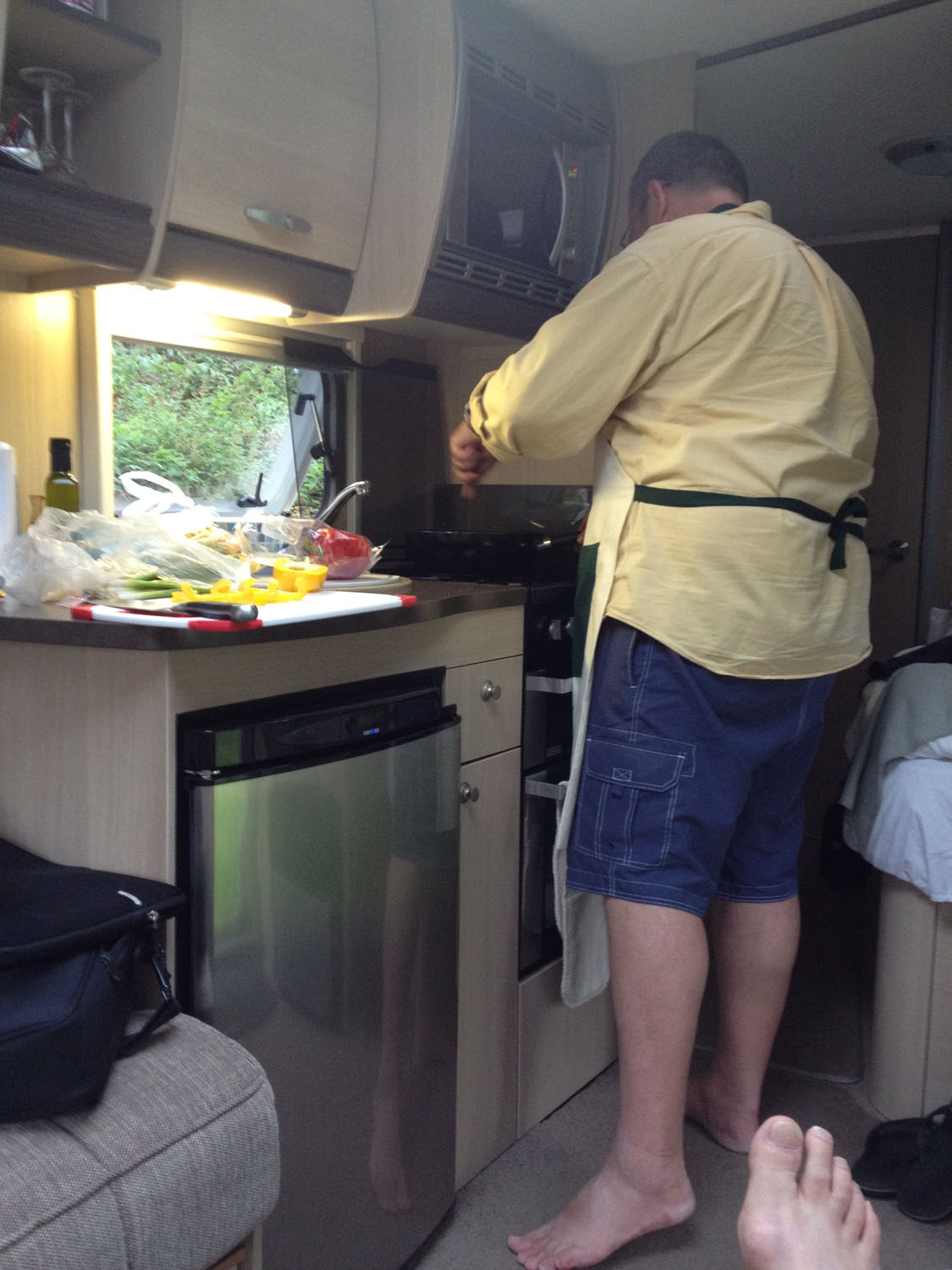 In the evening it was time to don my disguise once again as “One Hairy Caravanner” (well I am called Si and I have a beard and I have a caravan) and do a bit of cooking… I use the term “cooking” in a loose kind of way, I think preparing and incinerating might be more appropriate. At least in the caravan I’m constrained to the smallest possible disaster area and the smoke alarm is within easy deactivation reach.