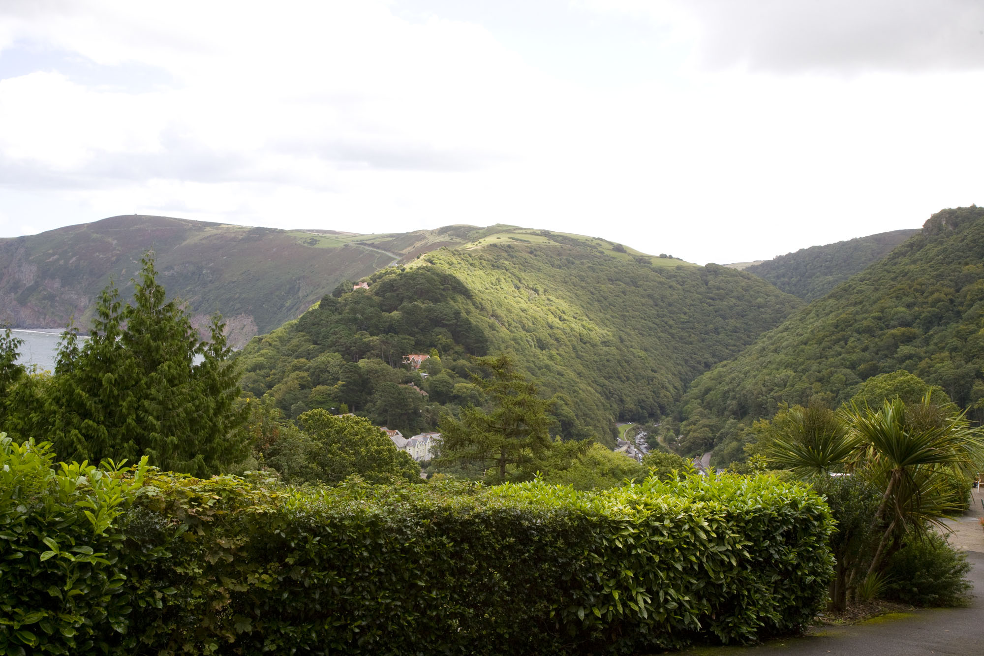 Looking from Lynton across to Countisbury Hill and the valley leading to Watersmeet (photo taken from the driveway of a hotel)