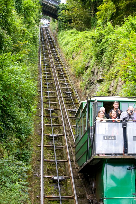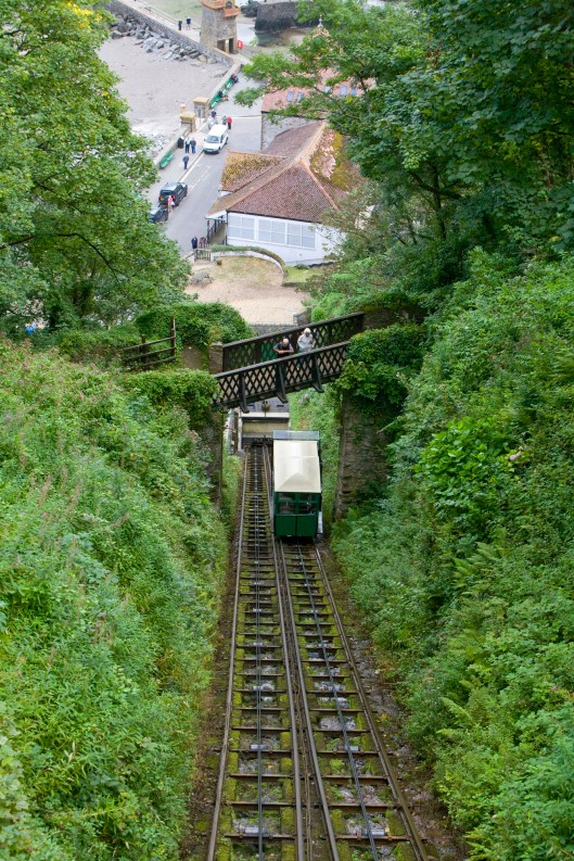 By now it was time to head back up to Lynton and neither of us suggested walking back up (I wonder why?) but instead by mutual consent we opted to use the cliff railway – well it gave me an excuse to take the classic “Lynton & Lynmouth Cliff Railway” publicity photo from the bottom… my collection would simply not be complete without it… so here it is