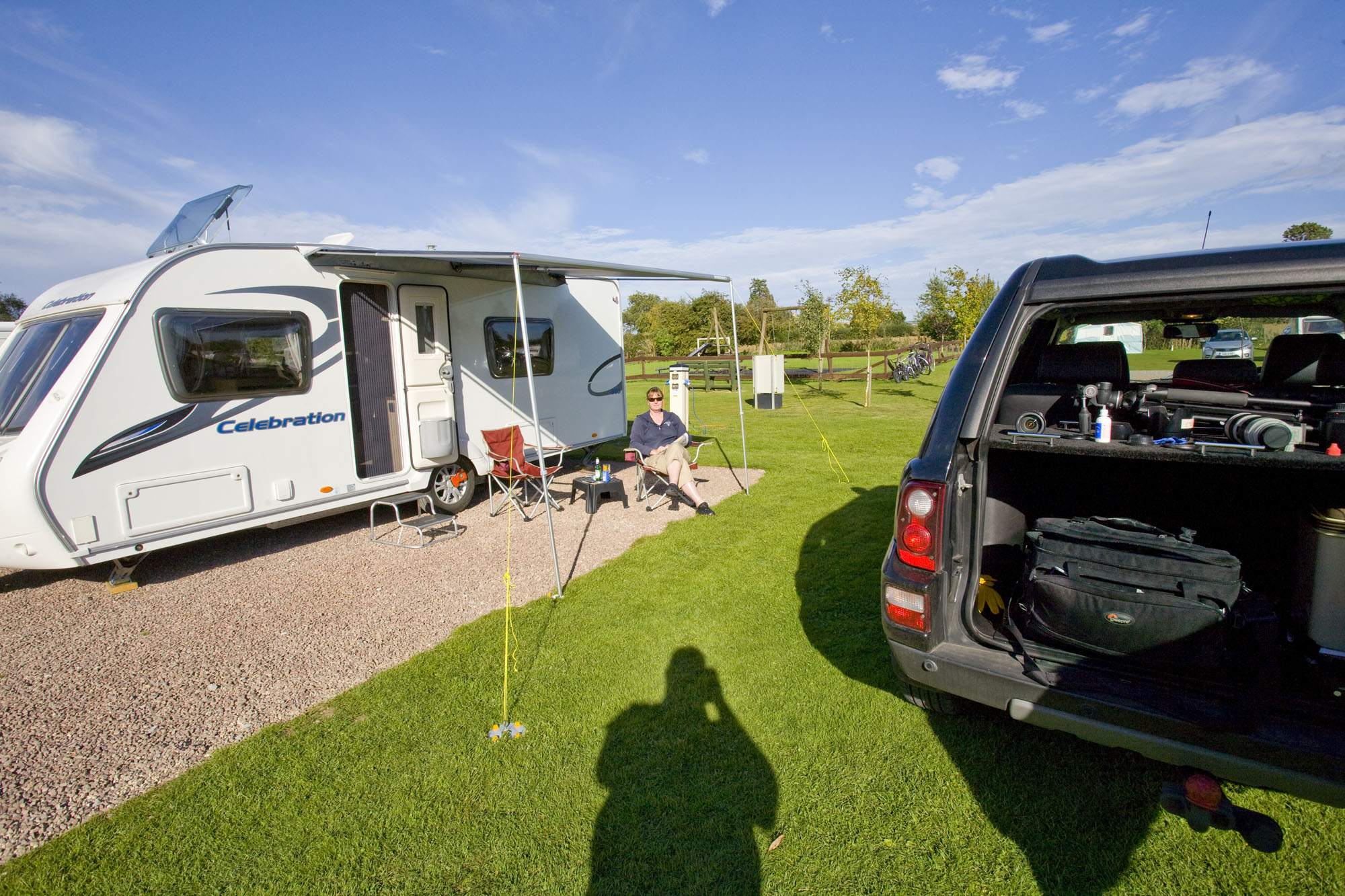 We found a pitch in the first pass and were given some excellent reversing instructions to get us just in the right spot. I suspect its quicker for the wardens to do this on a busy day rather than wait for someone who’s blocking the road to un-hitch and park the caravan with a mover. I didn’t spot it but Sue said there was a sign asking people to vacate their pitch promptly as they had a lot of incoming campers today and would be full.