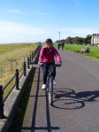 At St Annes Pier there is a small cafe with some tables outside and it was time for caffeine and calories. Sue got a couple of coffees and two mahoosive home-made sammiches, a “Famous Lancashire Cheese and Tomato” for herself and a “Chicken” for me. I think one would have done between us. We had thought of driving down here in the evening and then cycling in to see the lights from here. However there were gates on the entrance and exit to the car park so it looked like it might be locked at night, so that idea was shelved. Now comprehensively stocked up on caffeine and calories, we set off to cycle back.
