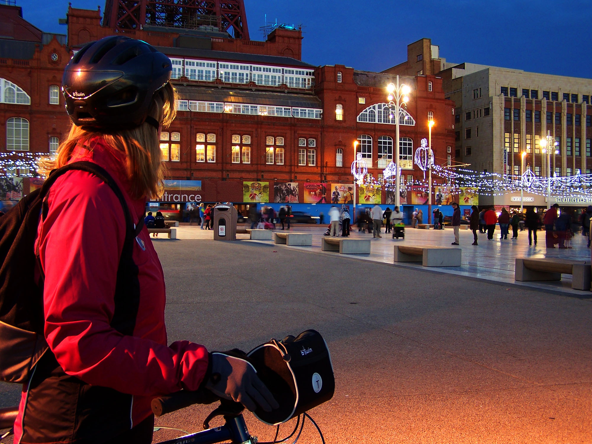 We cycled back past the dioramas and got as far a Glynn Square when all the lights came on. We later found out they come on at 7:30 not 8:00 as the radio station was broadcasting on that date. The urban assault corse continued and as we approached the north pier we dismounted to get through the crowds, getting back on again as the prom widened out. The ride back was great, cycling the illuminations has to be one of the best ways of seeing them. If you ever get the chance, it’s well worth it.