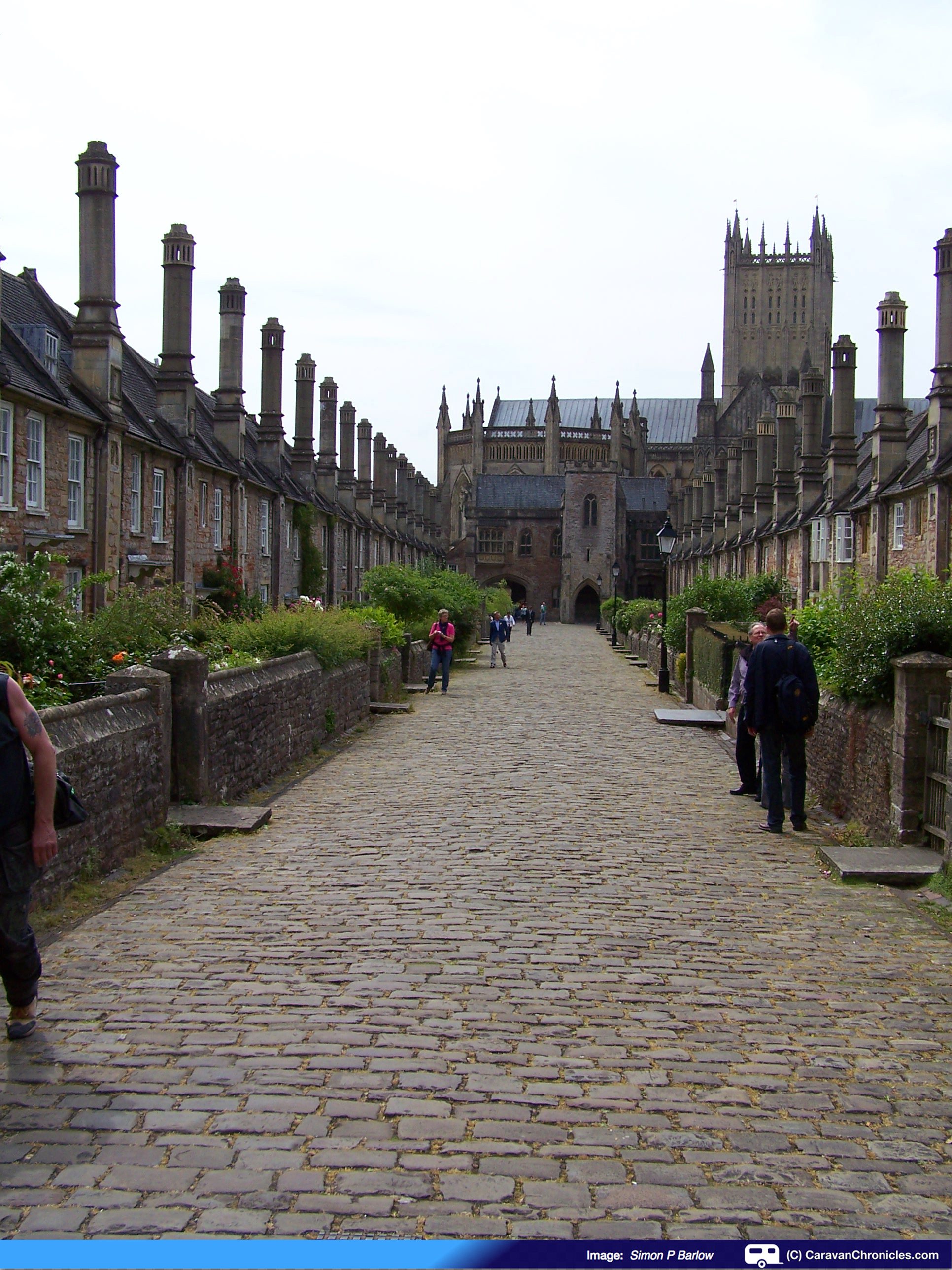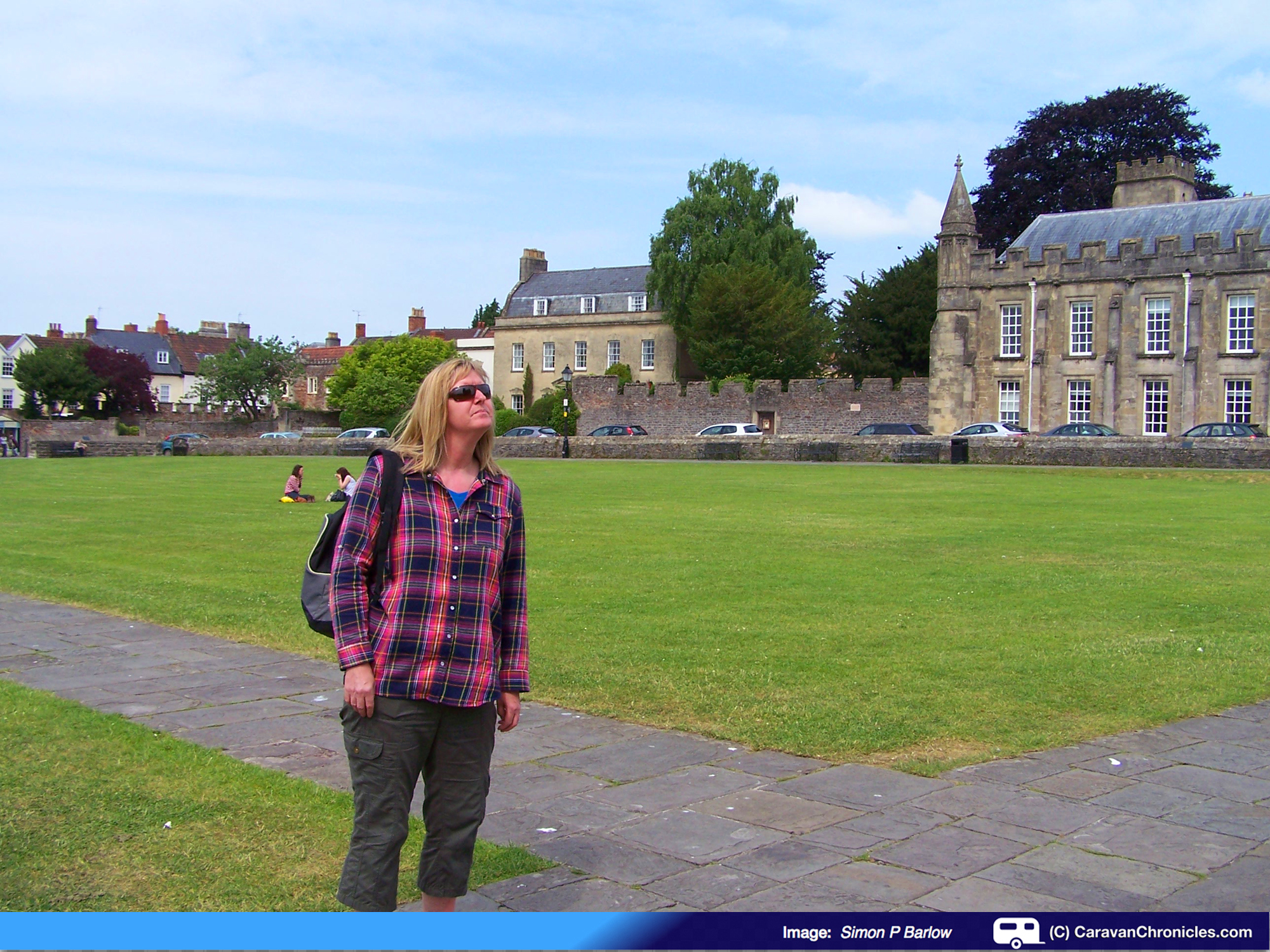 The main shopping street had a small stream running down a channel either side from the well… hence the name “Wells”, and it was funny to see someone walking their dog on a lead oblivious to the fact the dog was trotting along in the ‘stream’ enjoying it’s self immensely. The previous day I’d printed off a map of a walk round the town that took in the main sights and basically did a lap of the Cathedral and Bishops Palace, so armed with the map we set off up the main street to the Market Place in front of the Town Hall for the starting point.