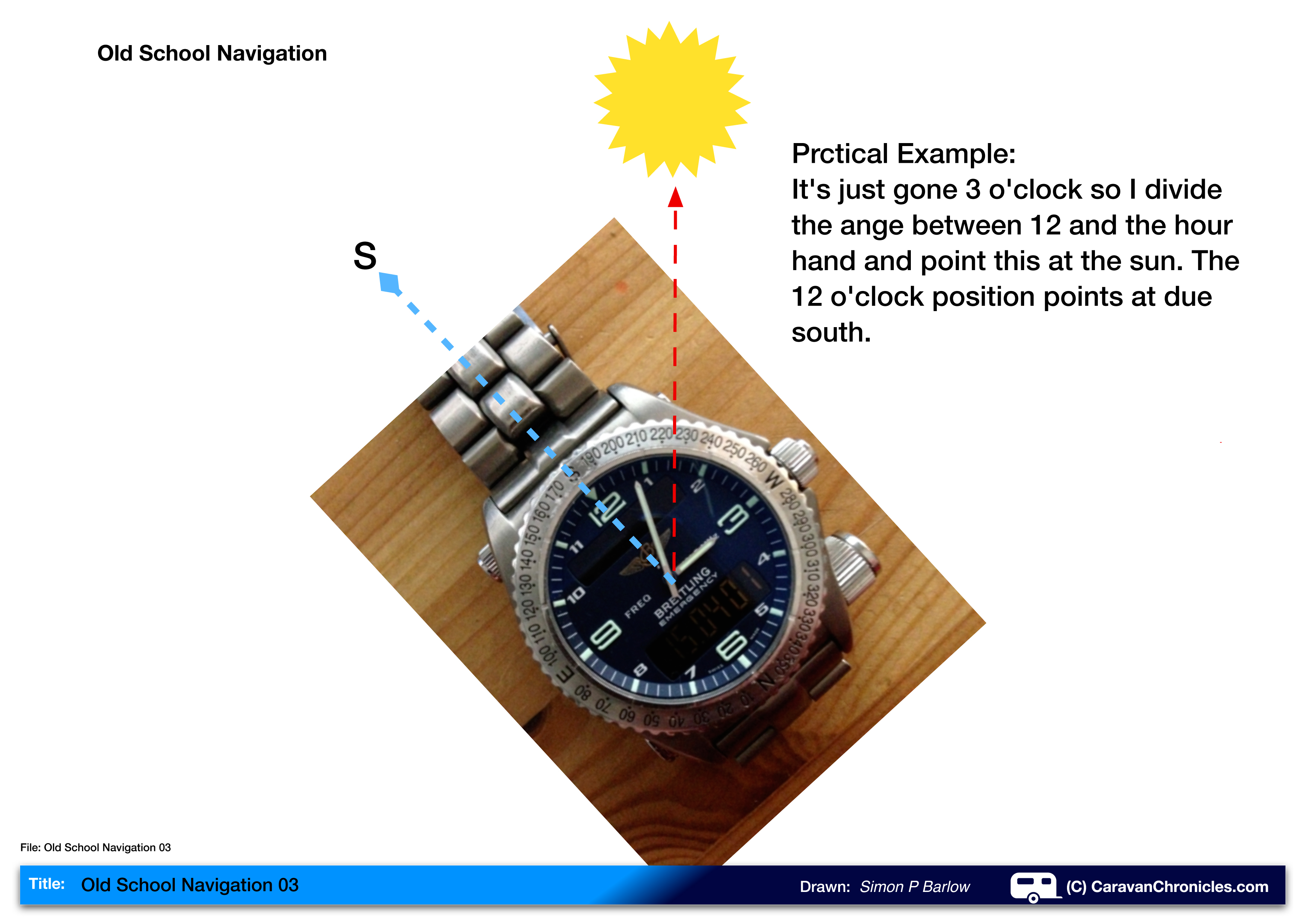 Back in the day, practical things used to be taught. One of the things I learnt was how to navigate using my wristwatch. The first time I piloted a single engine aircraft across the Atlantic even though we had accurate GPS navigation on board, I still used it as a gross error check. So what use is it when out in the caravan, motorhome or even tenting?