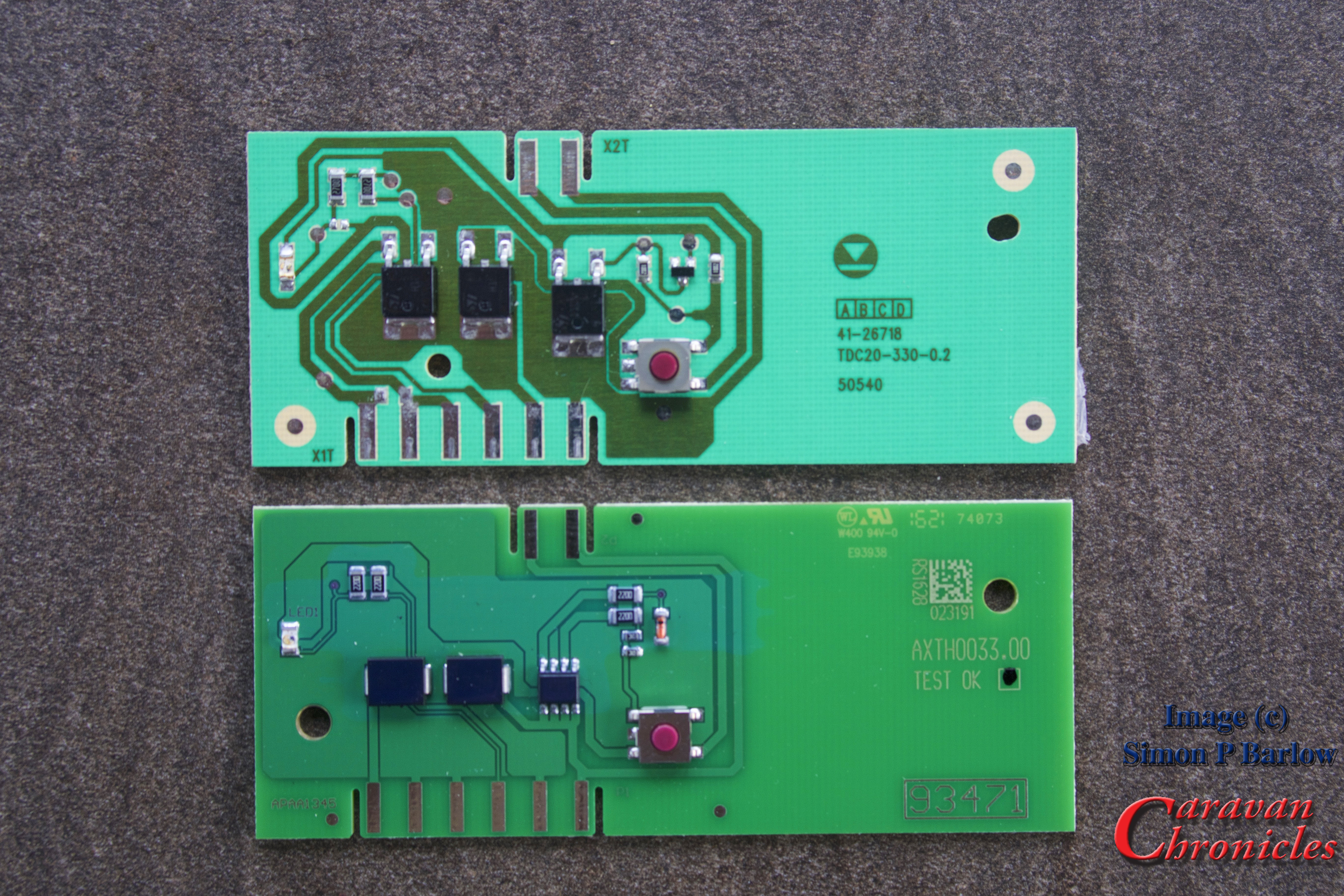 The old circuit board top, with the new one below.