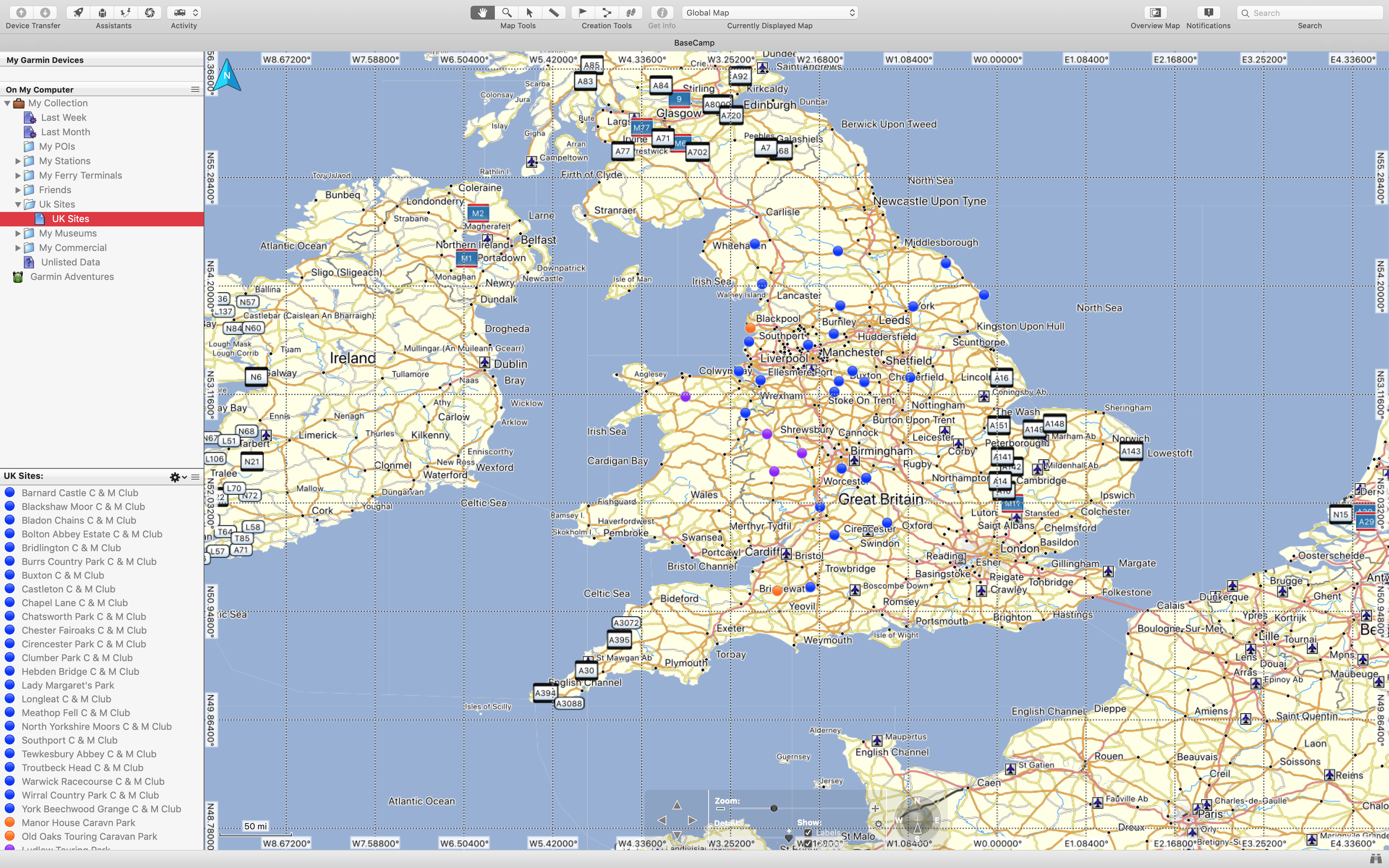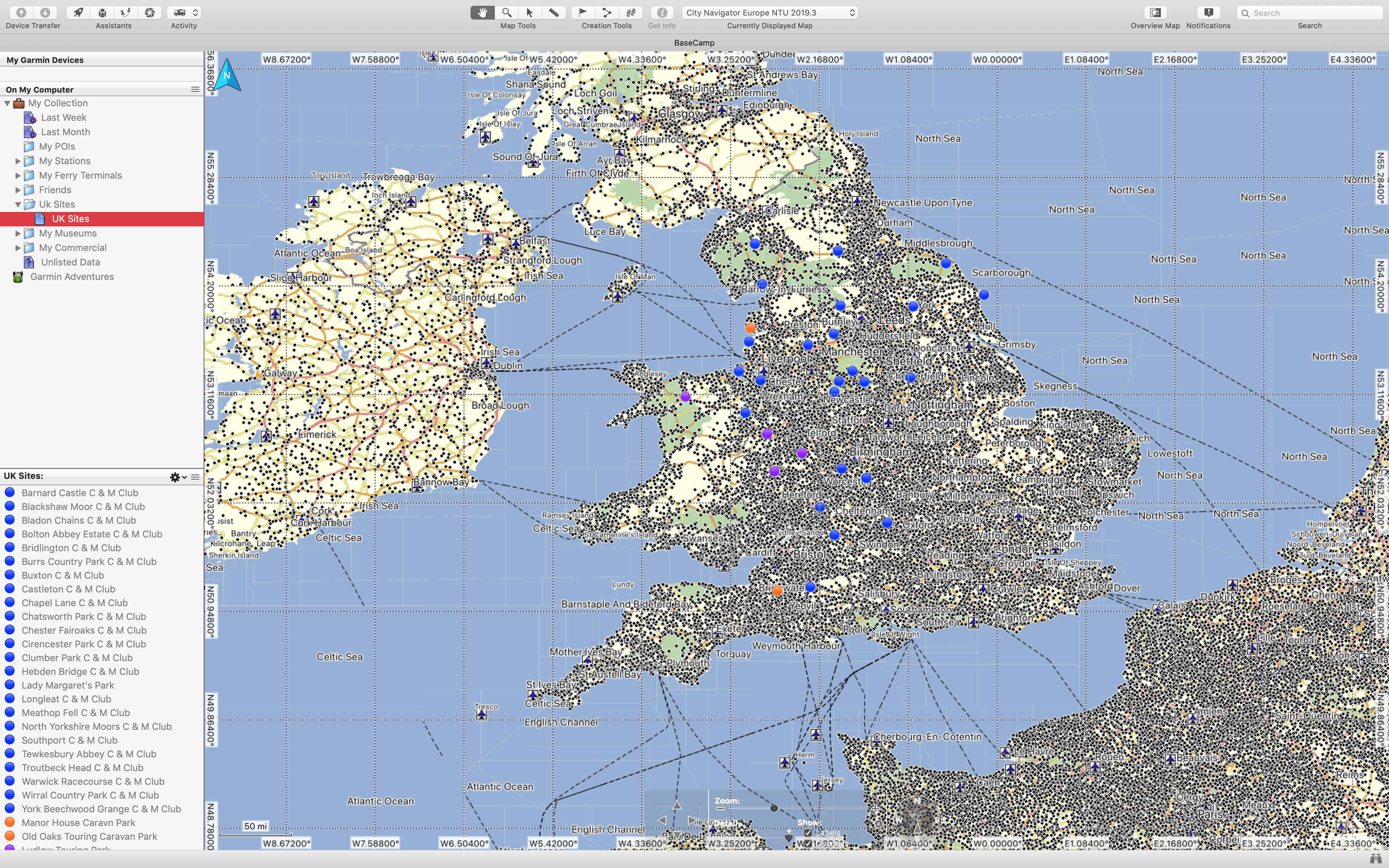 Here I set up a waypoint for Southport C & M Club. Really easy and only took less than a minute. By installing Garmin Basecamp before actually receiving the 770, it gave me a chance to sit and play about with the software before getting too distracted by the new gadget. I set up about 50 waypoints, sorting them into various categories – C & M Club, Museums, Ports, Friends etc. As I was unsure what actually came pre-installed I thought it might be best to get a head start on the most common ones.