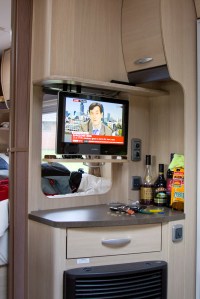 We originally used a Logik LED TV from Comet, but decided that changing over to a 12 Volt TV and mounting it in the drop down TV unit in the caravan was a step forward rather than having to unplug the existing one and pack it away every time we moved.