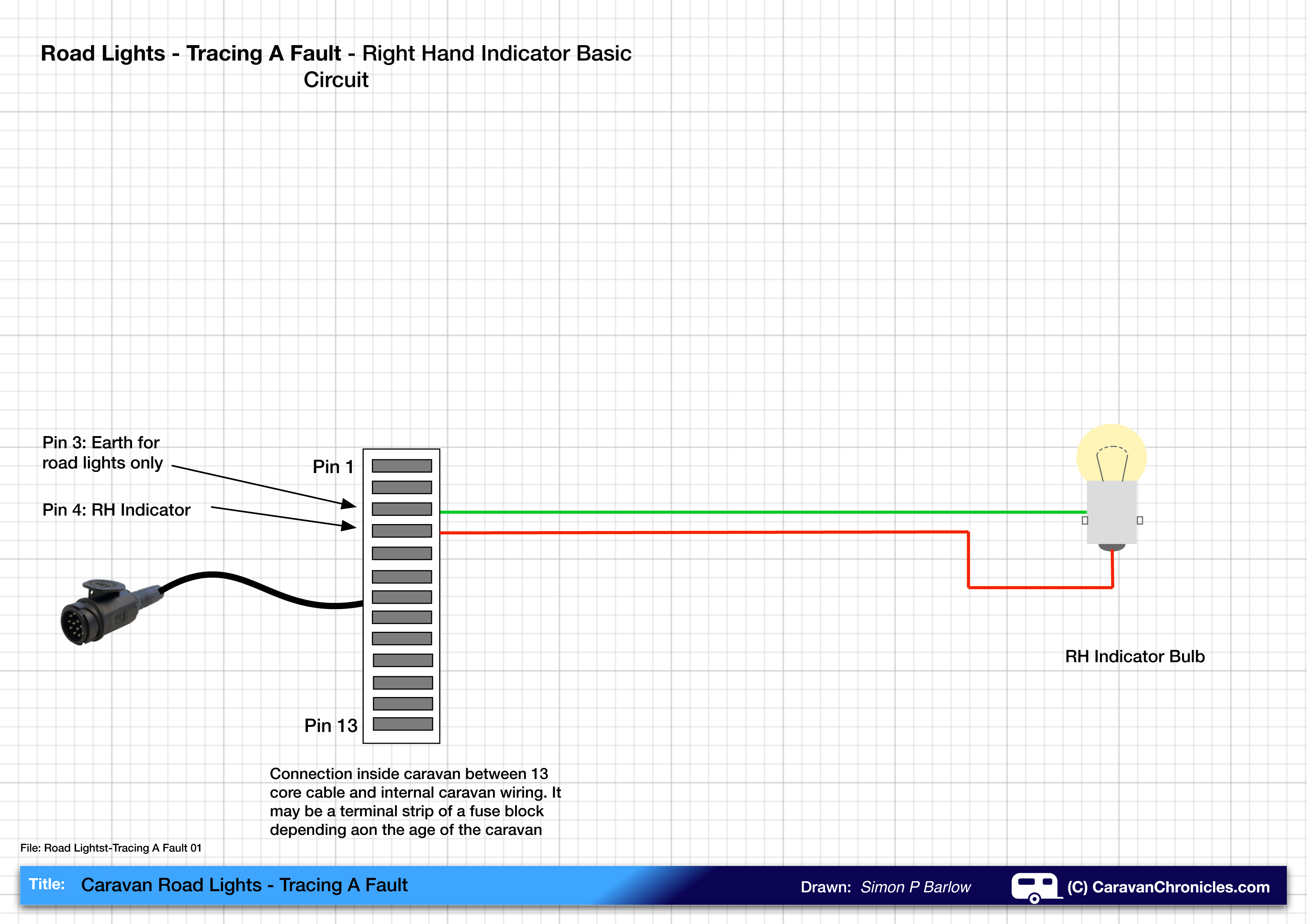 Lets have a closer look at the circuit for the indicator wiring in the caravan drawn out:
