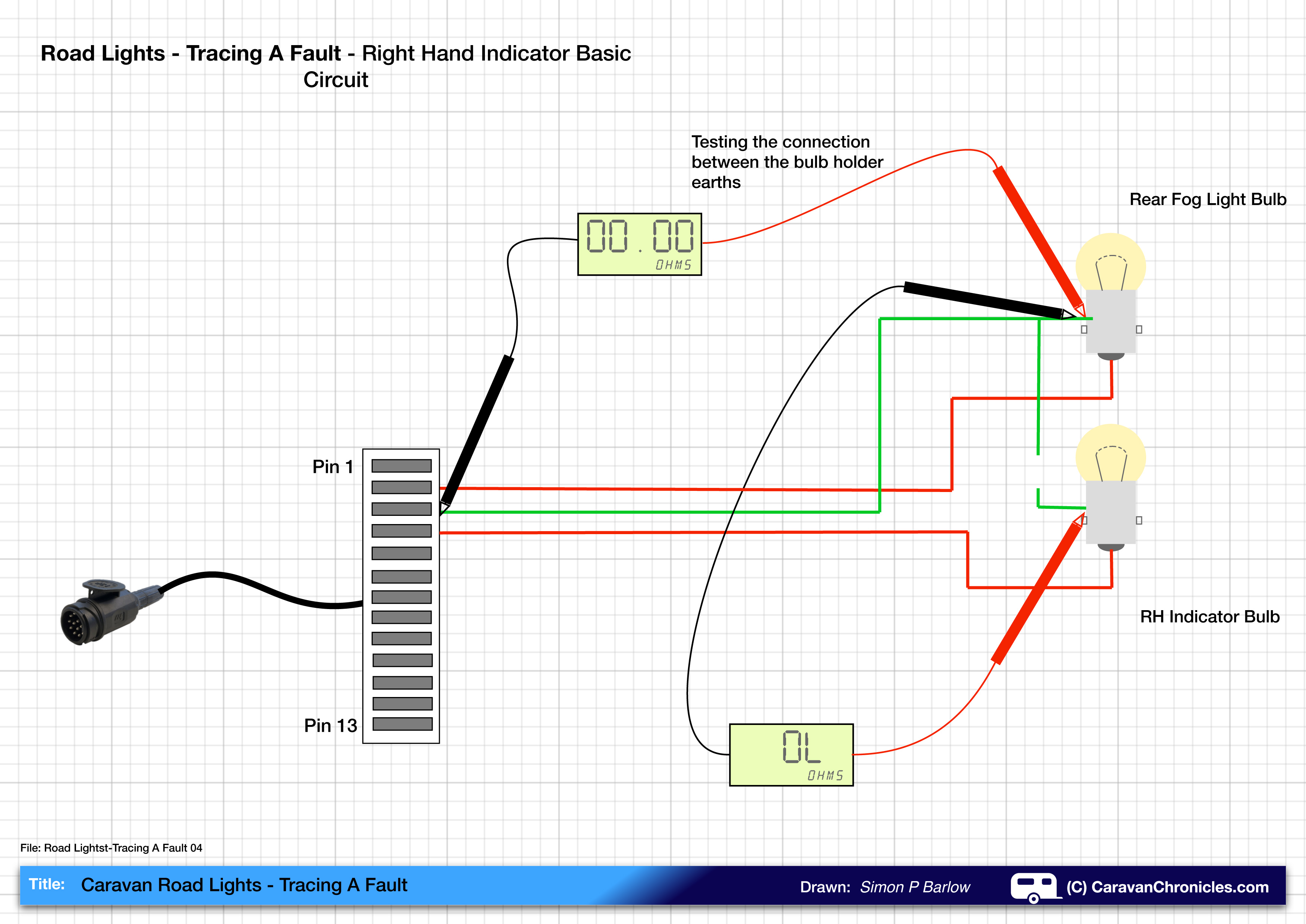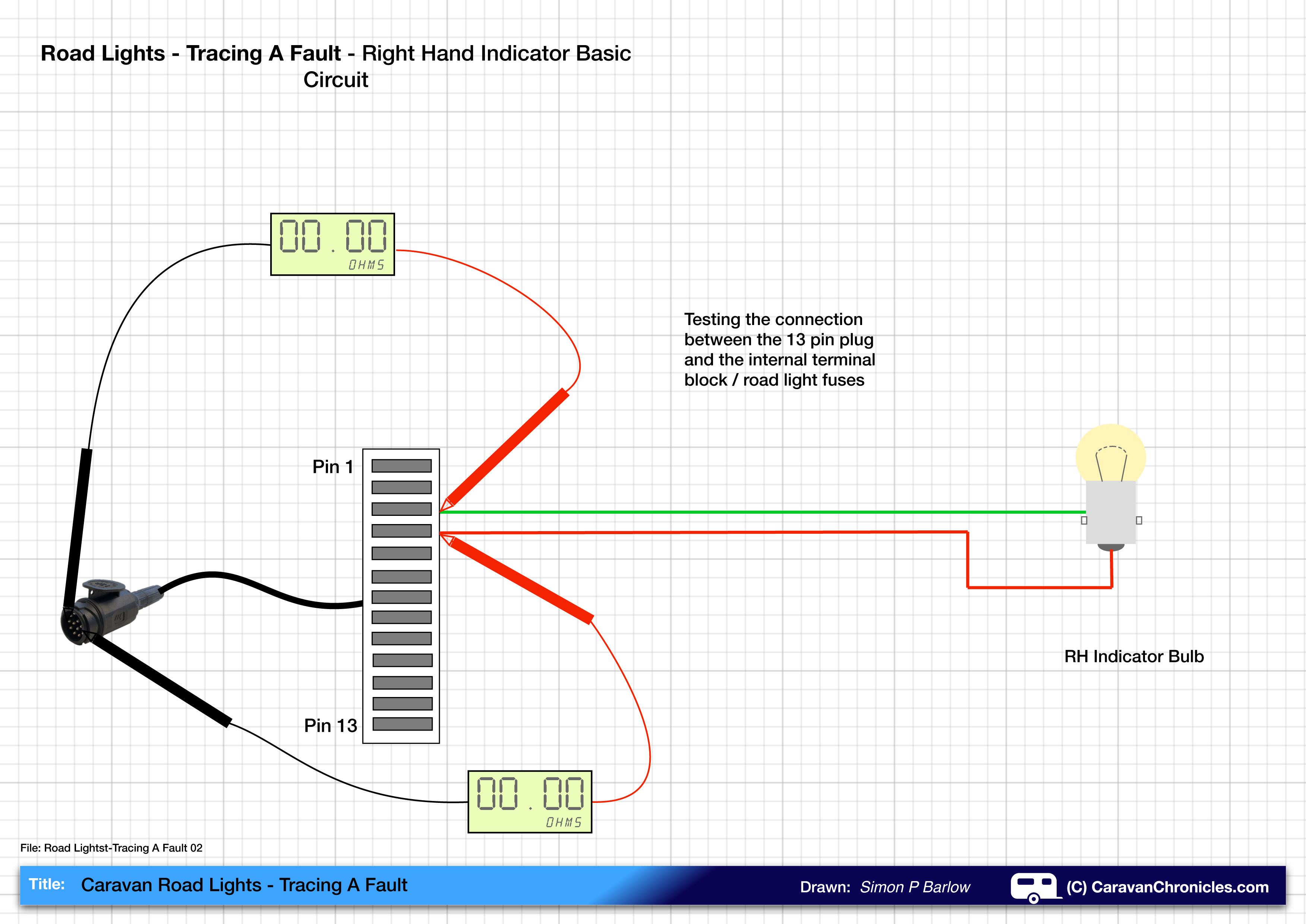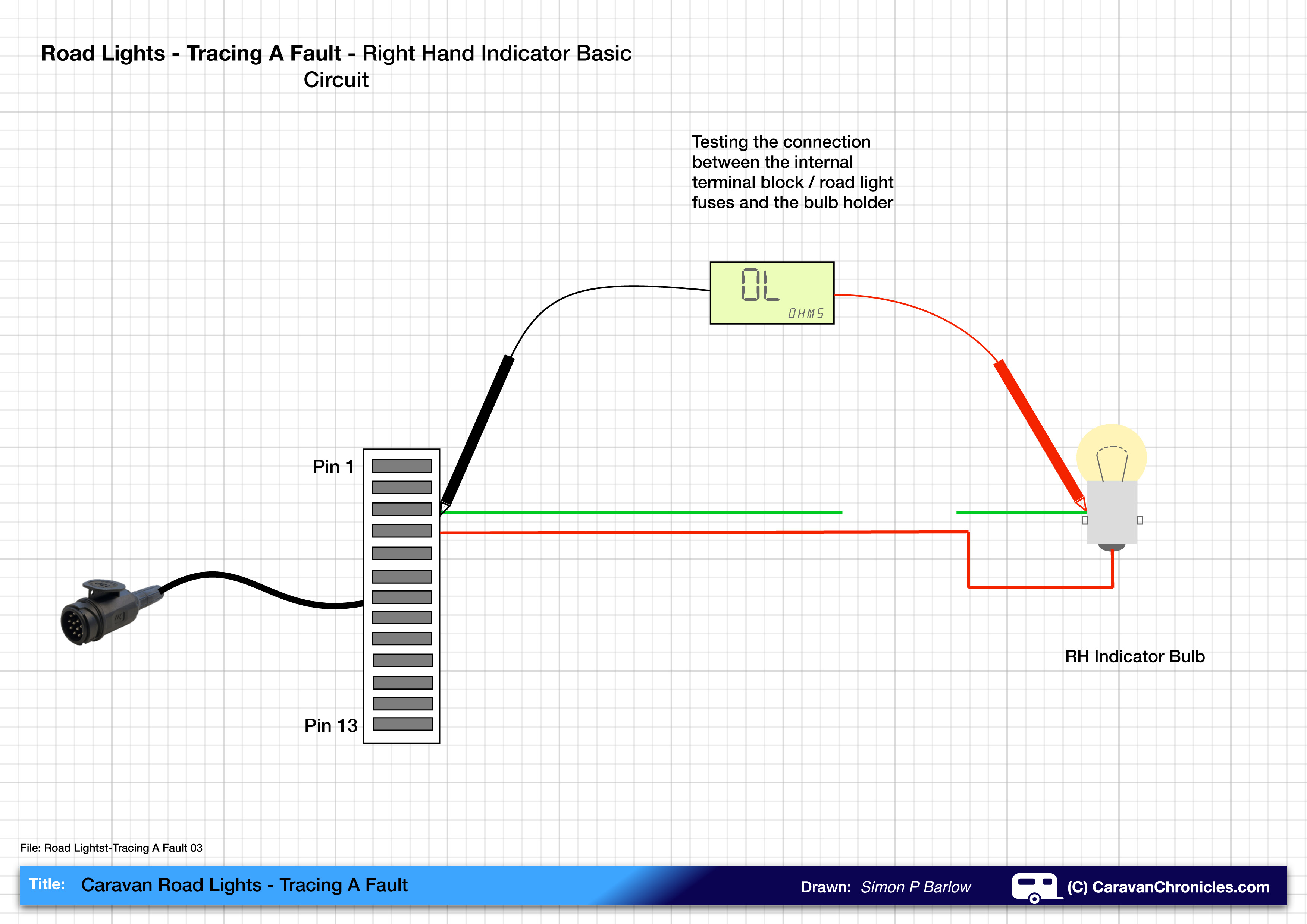 We tested the 13 pin socket on the tow vehicle (13 Pin Socket – Basic Fault Finding) and found everything to be working correctly including the connection for the Right Hand Indicator, but when the caravan or trailer was connected to the tow vehicle, the right hand indicator wasn’t functioning.