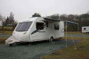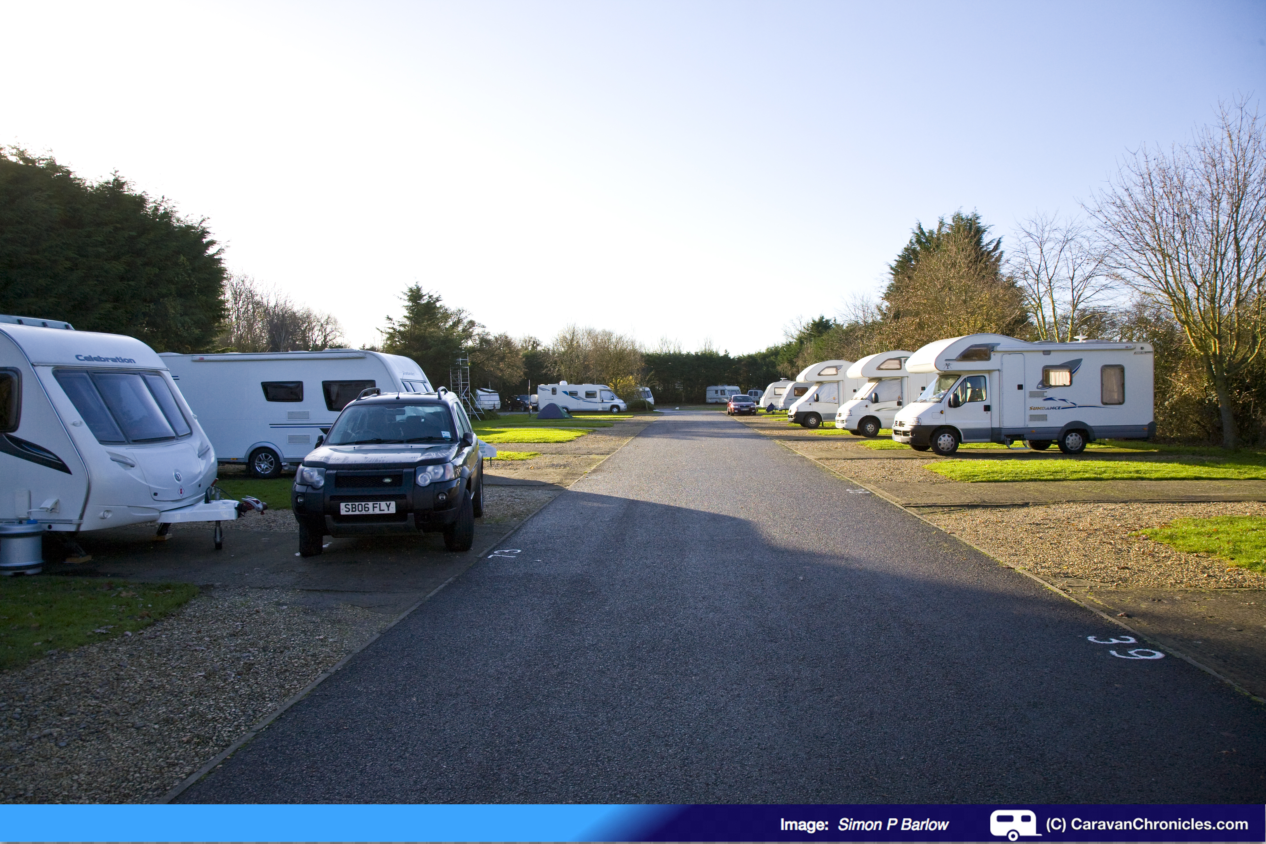 We arrived at the site about 12:20 and checked in. During the winter months the site has to run on a reduced number of pitches due to the ground conditions and motorhomes are parked on the tarmac road areas. We were shown to our pitch which was on the northern side of the site. The grass wasn’t too soft but had obviously been wet for a number of days.