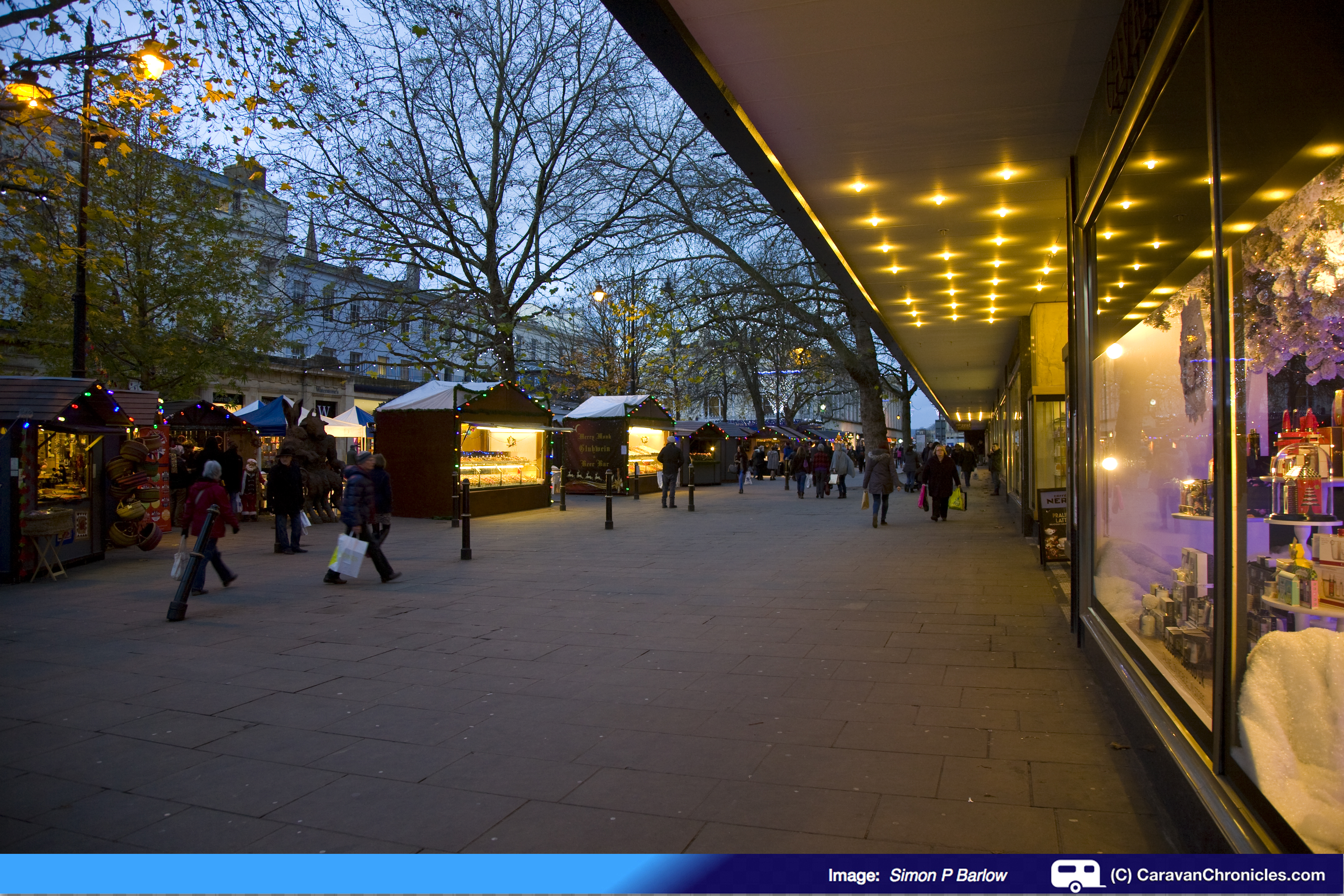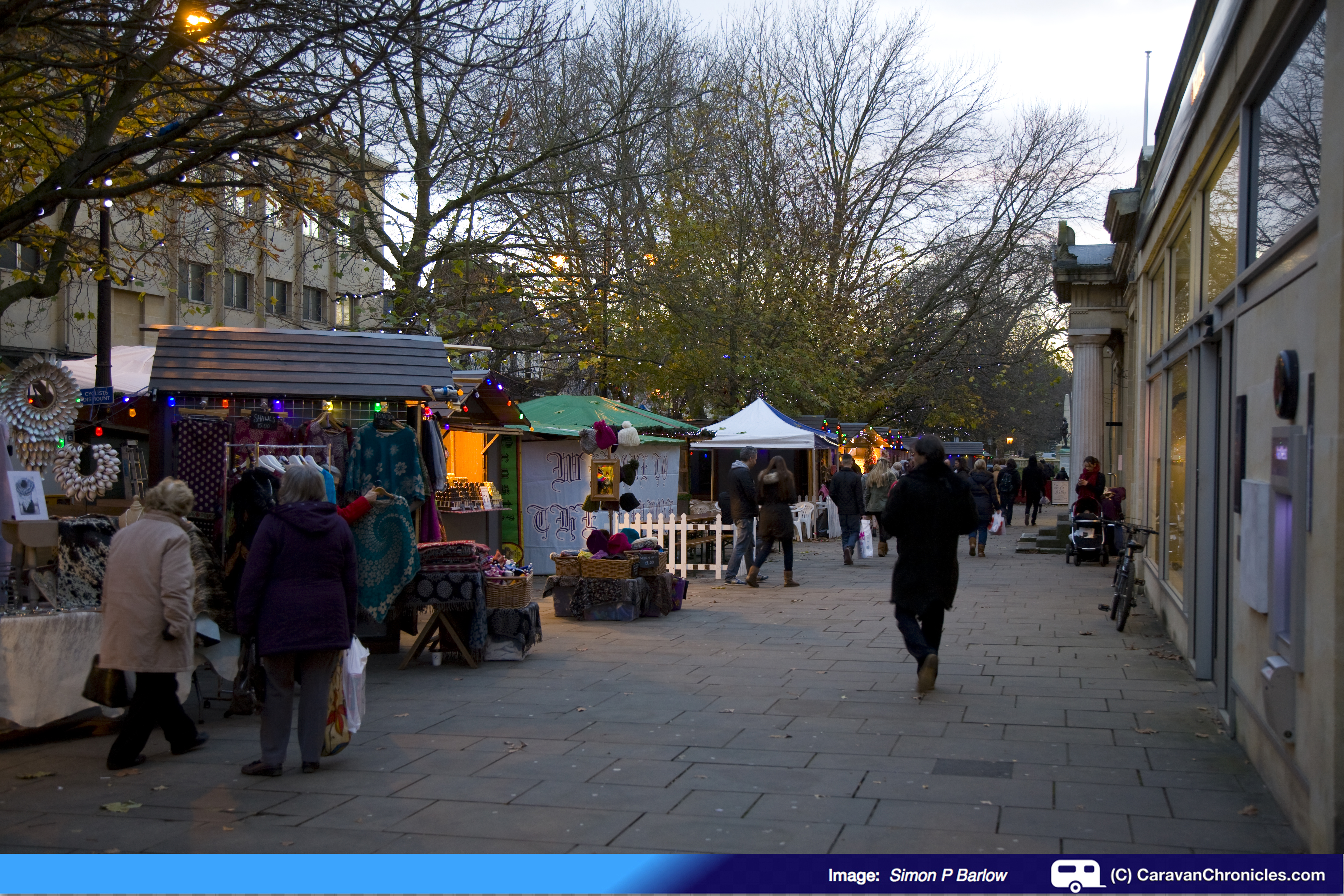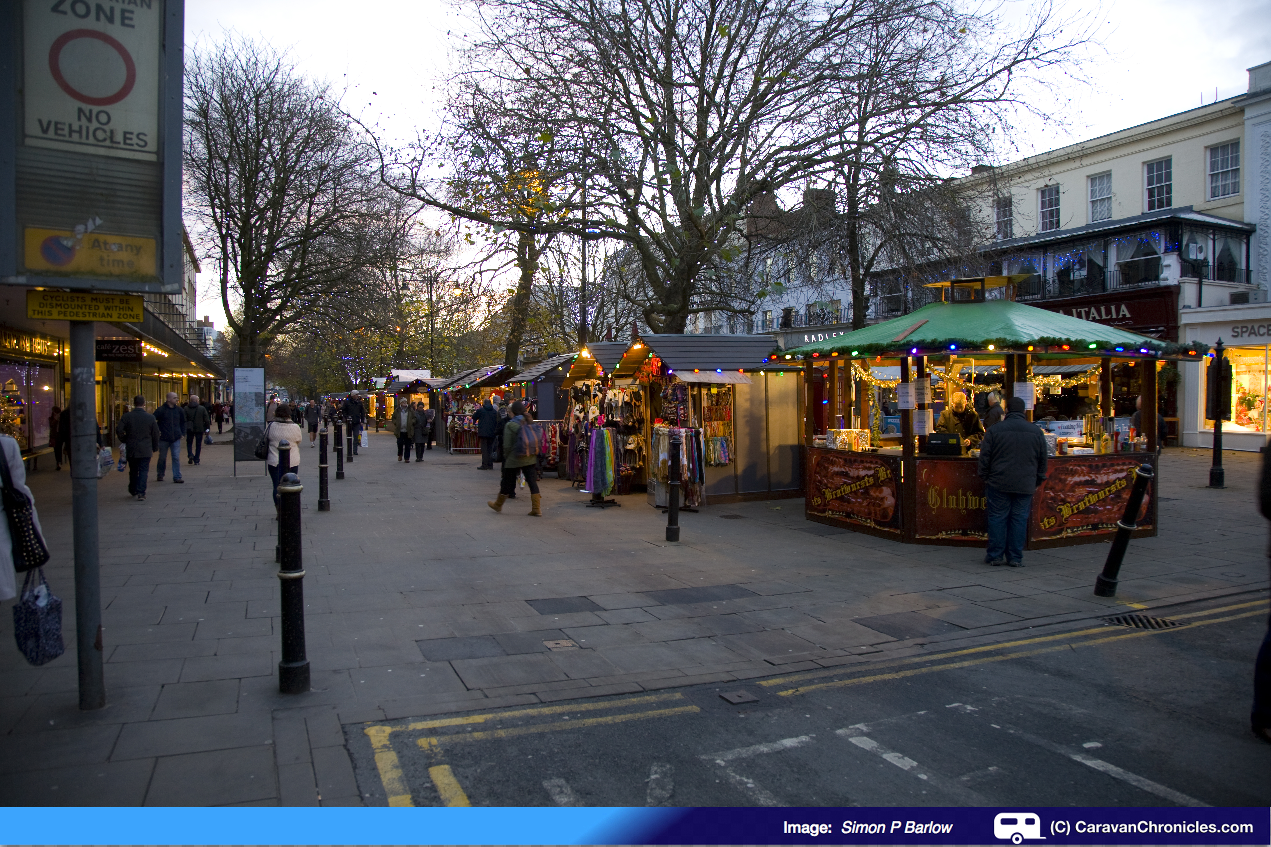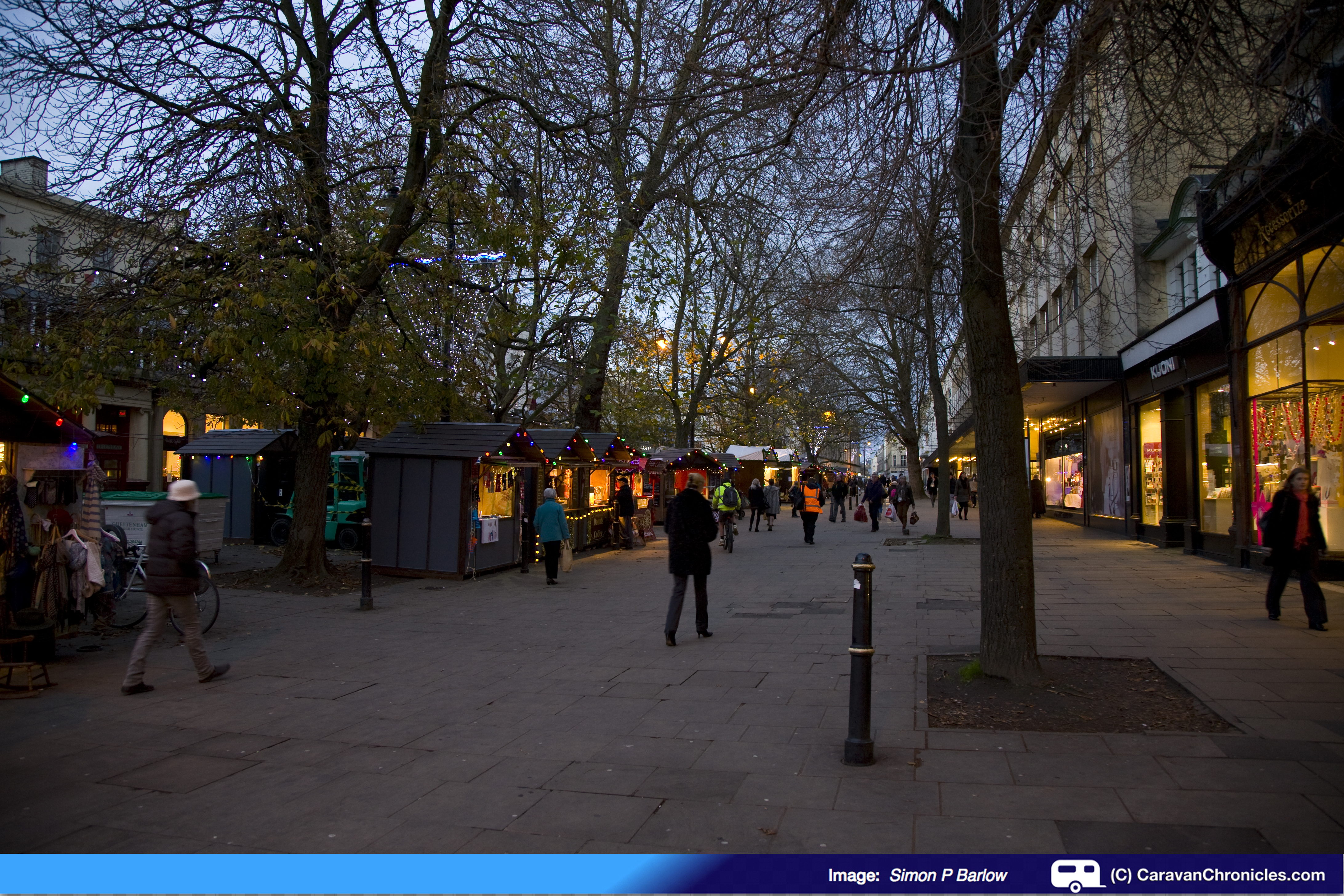 We headed out again to cover a few more shops and to do another turn round the Christmas market – just in case we had missed anything. The light was starting to fade and all the Christmas lights decorating the streets came on. Deciding it was time to head back we retraced our footsteps back to the bus top to catch the 300 back to Redbridge Park & Ride opposite the caravan site.