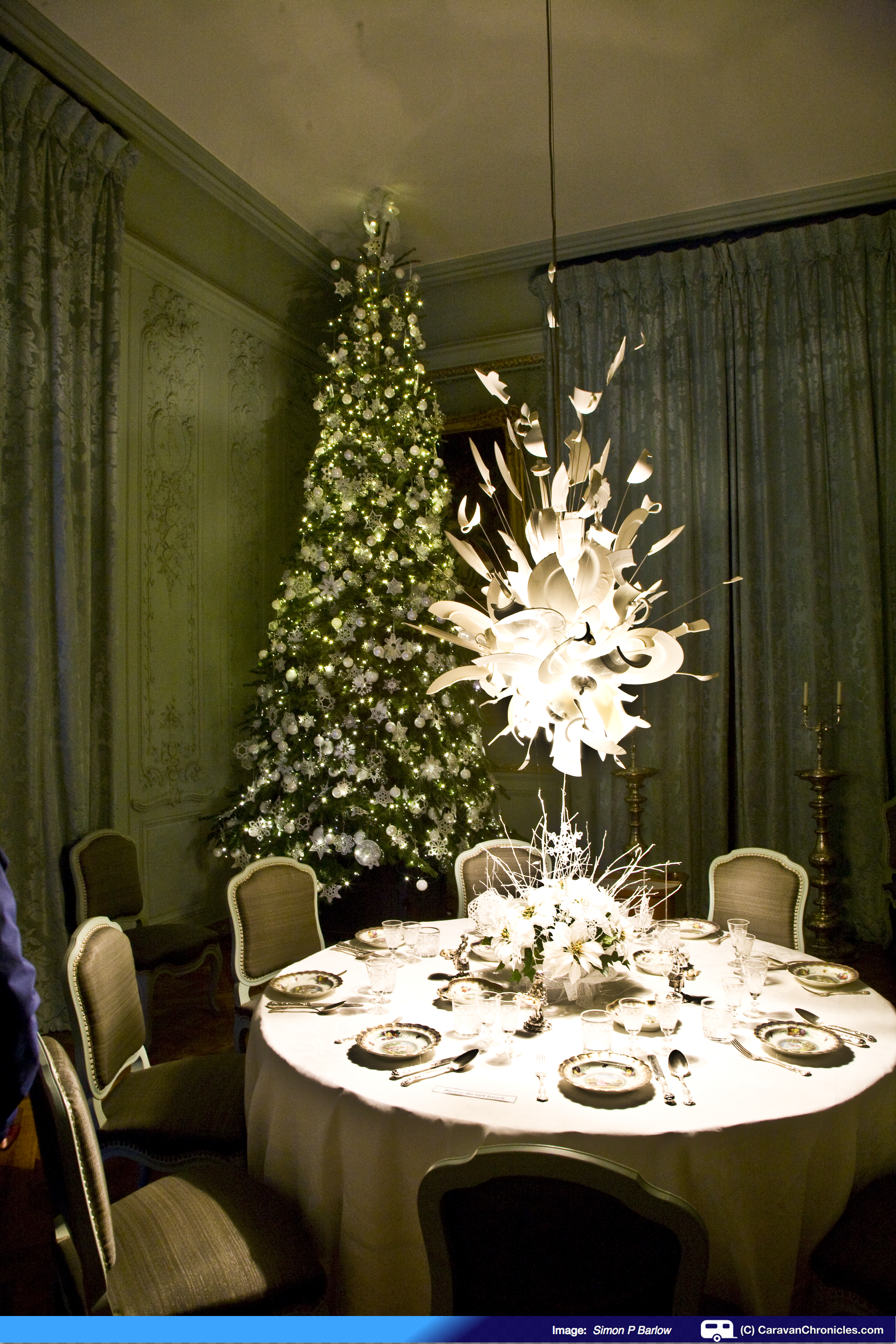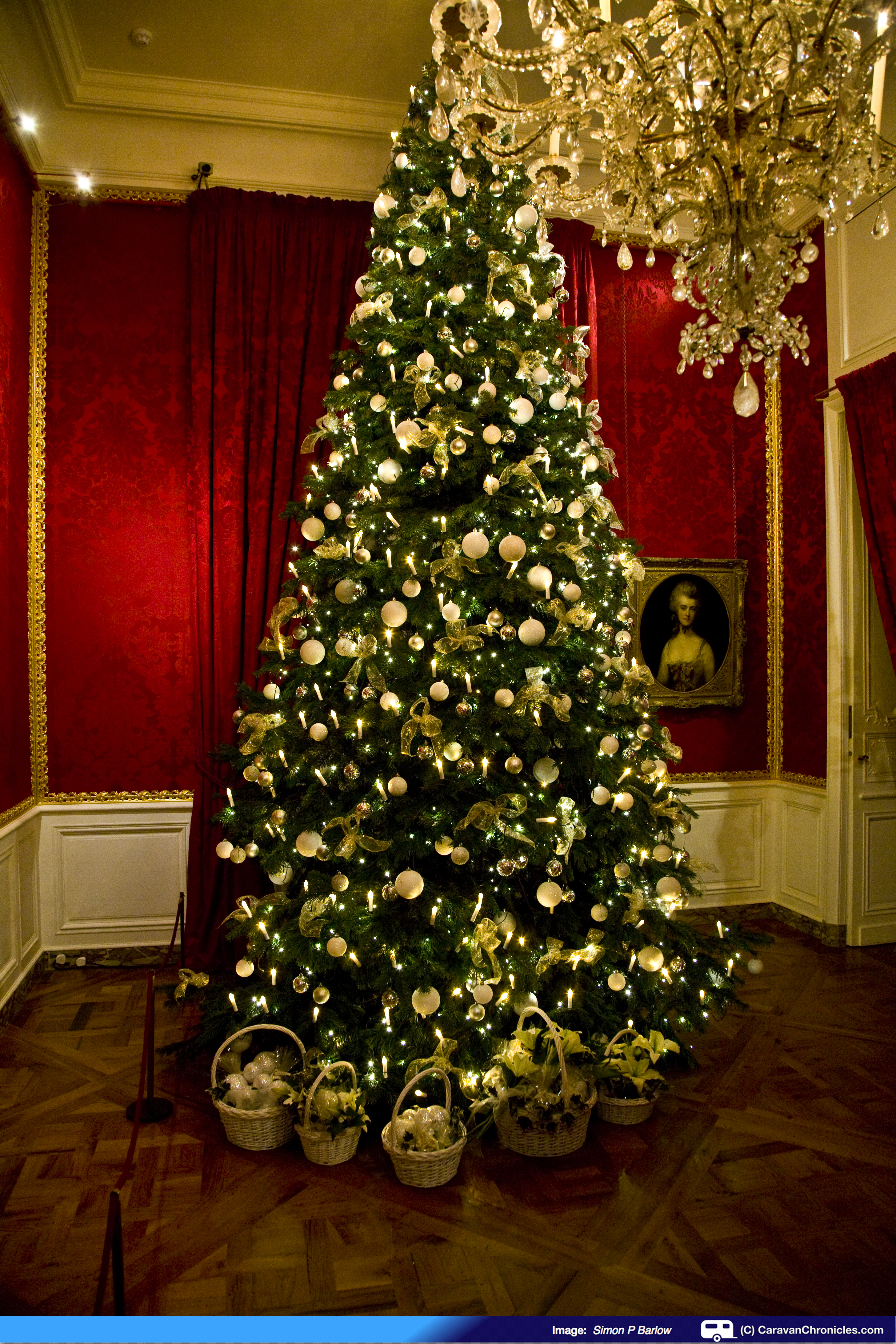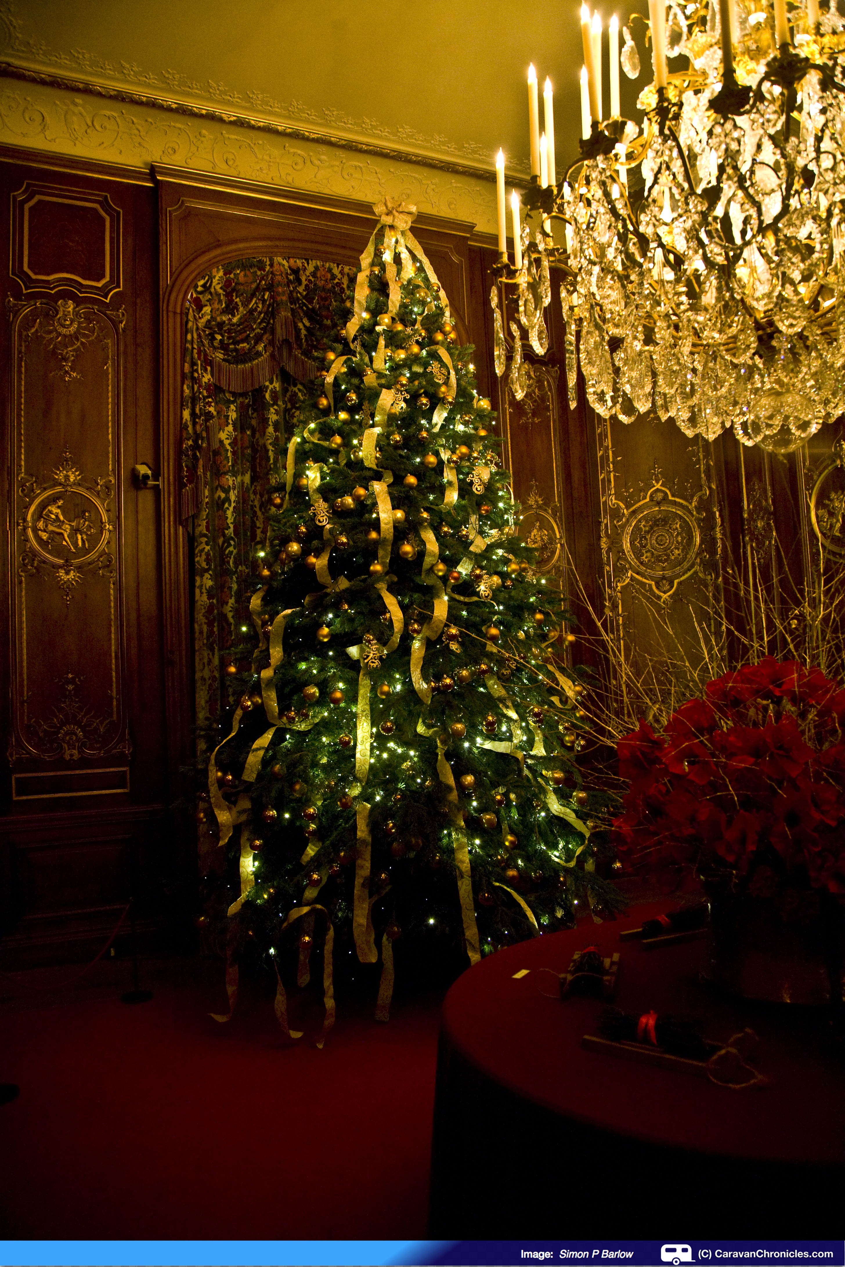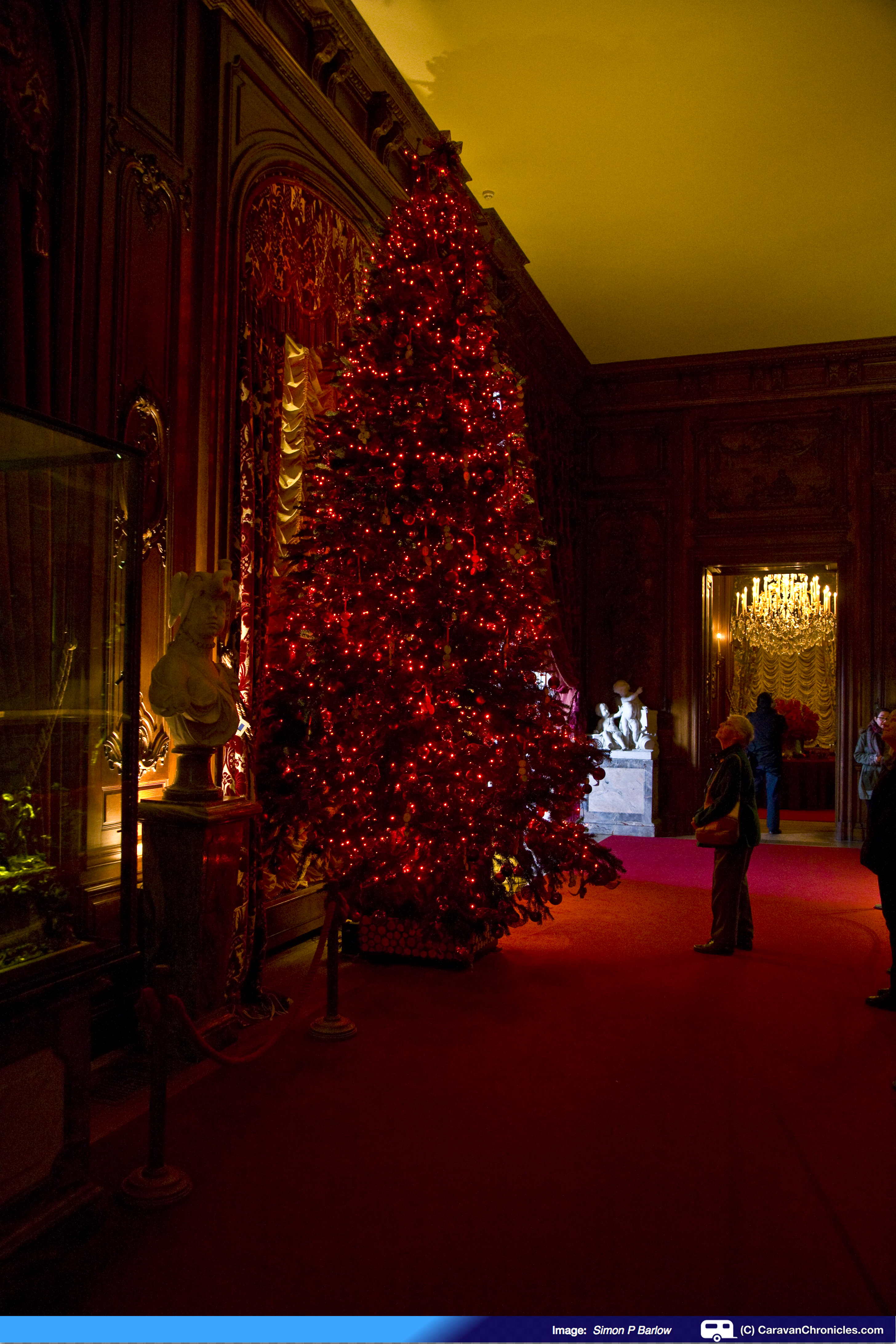 The house is the former home of the Rothschild family… (or some section of it… I’ve not read up on it yet) and is set in wonderful landscaped gardens. While most of the house was closed for its annual winter deep clean, one wing was still open and had been decorated for Christmas… with dozens of Christmas trees grown on the estate specifically for certain rooms in the house, so the height and width of the tree had been monitored to ensure an exact fit… here is just a few: