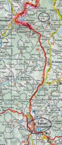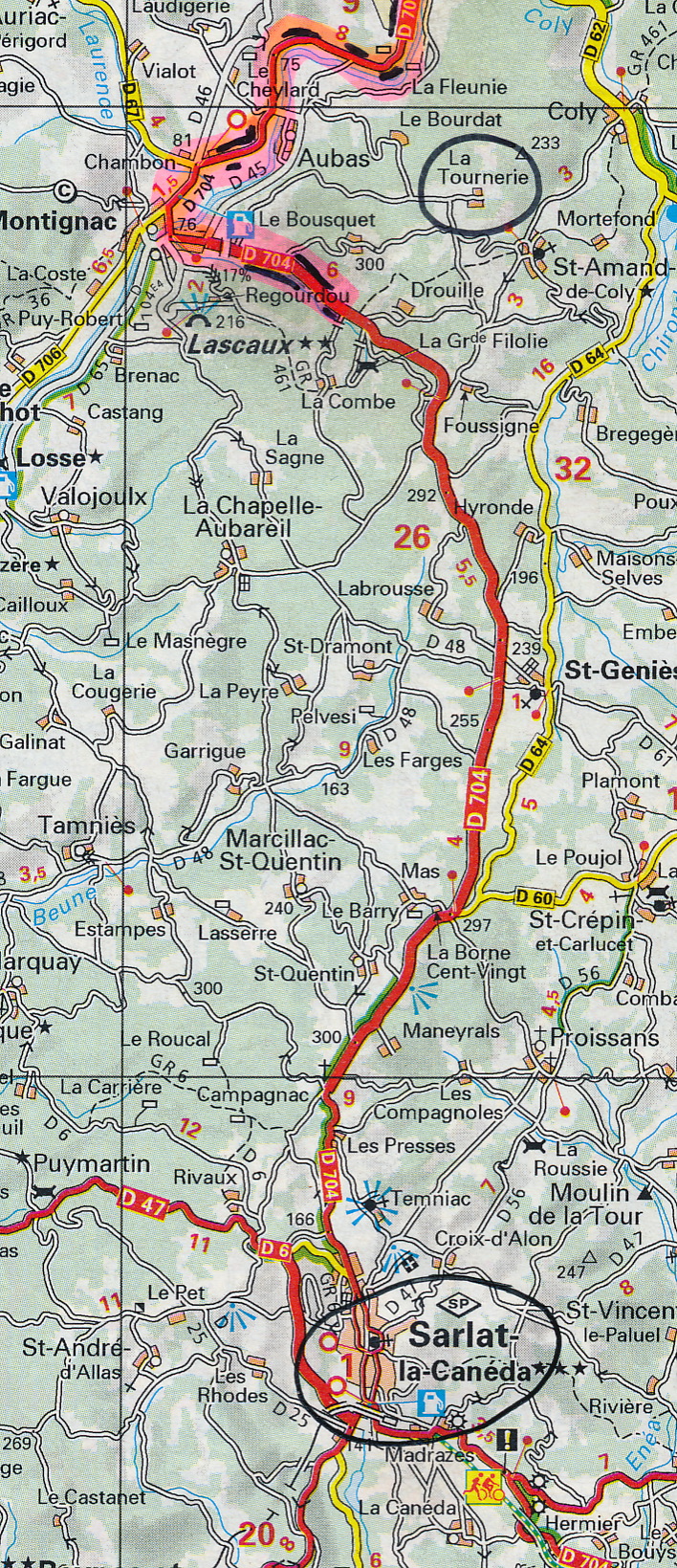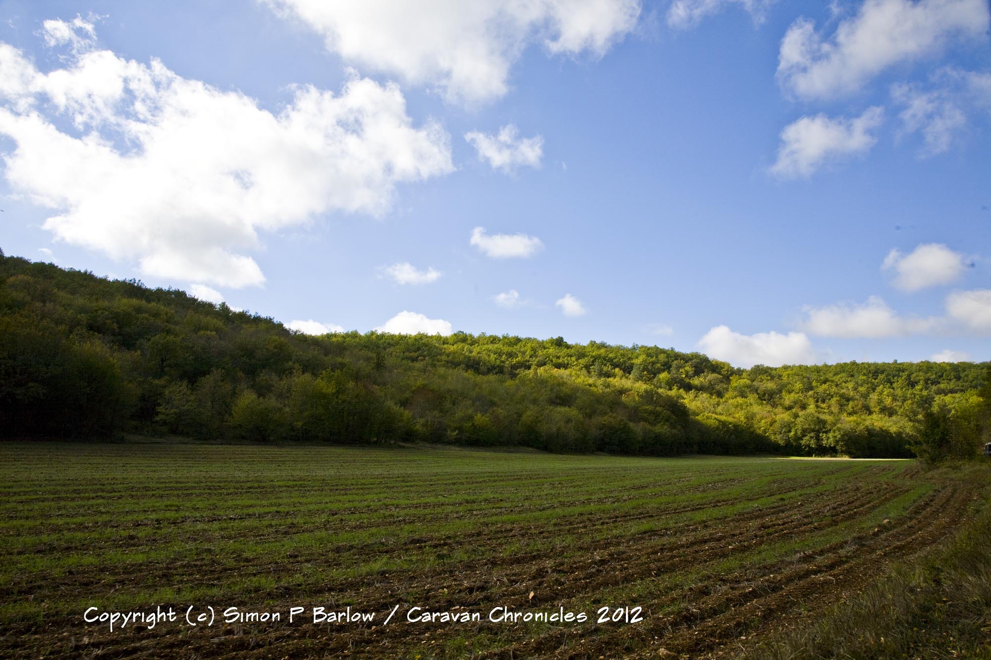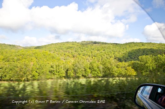 We followed the narrow road towards the D704. In places the wind had brought down a lot of small branches from the surrounding trees, but nothing that couldn’t be avoided by driving around. Within a few minutes we were on the D704 heading past Montignac and on towards the D6089 and Terrasson. The wind was quite light and I didn’t really notice it towing the van. Once on the A89 there were a couple of the warning signs telling us of strong winds, but I didn’t think that they were excessive and they didn’t seem to be pulling me about even when we crossed some of the viaducts. Once on the A20 the signs weren’t warning us about the wind any more and I allowed the Freelander to accelerate back up to 55 MPH.