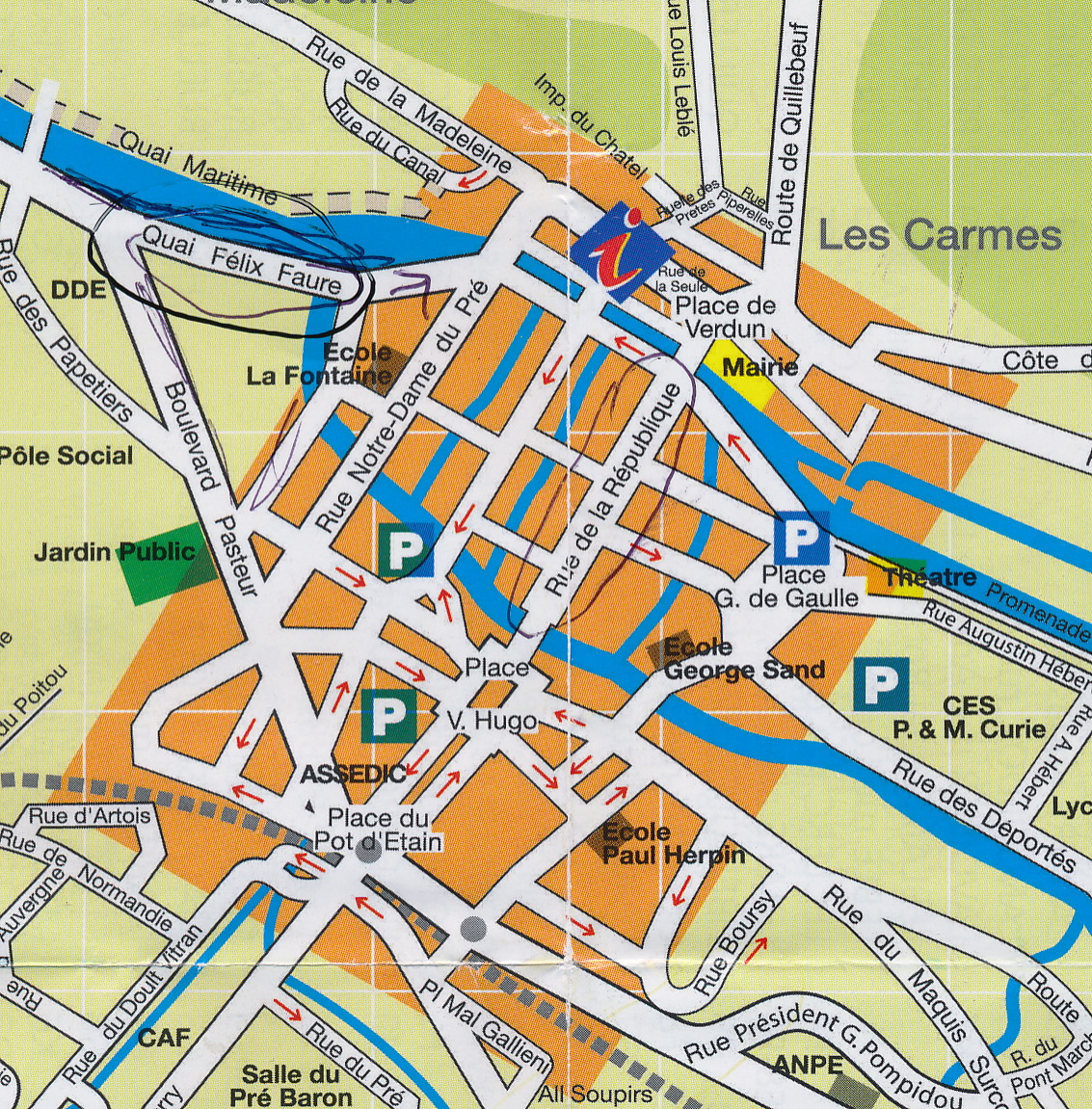Top Tip: don’t head for one of the car parks…. there are plenty of free parking spaces on the quay side… “Quai Felix Faure” on the map and walk down Rue Notre-Dame du Pre and cut across to the town centre.