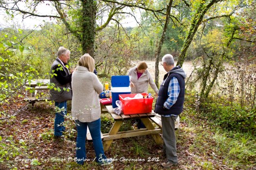 The wind was still blowing, but as we had stored the awning canopy the previous day, we didn’t have a night of tapping and banging. The site was in darkness as I crept outside to start disconnecting things. Sue was tidying away all the loose items inside and I started at the back of the van….. the Thetford Cassette was first. Thankfully I didn’t have to empty it by torchlight as Phillip had installed lights over the Elsan point and Grey water point. Next came the wastehog followed by the aquaroll and finally the EHU lead. By the time Sue had finished we were ready to wind the steadies up. I had intended to use the manual handle, but unfortunately I’d parked too close to the rear wall so I had to use the Makita which seemed to sound like a road drill in the darkness. Apologies to anyone if it woke them.