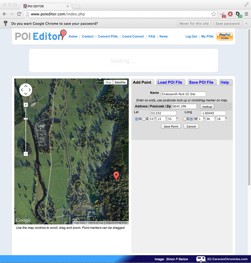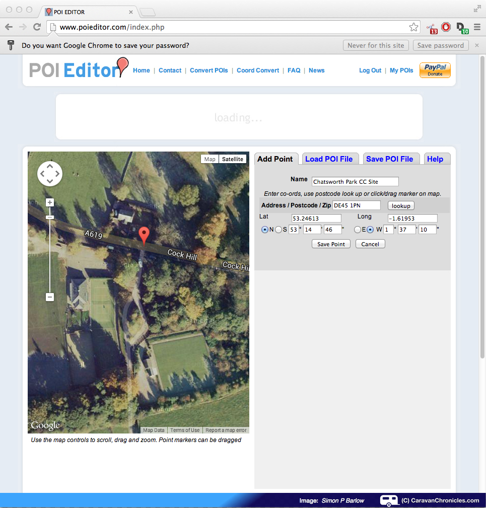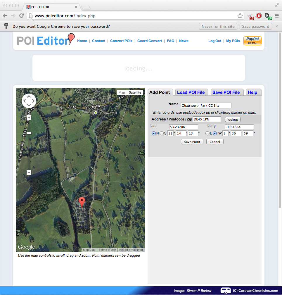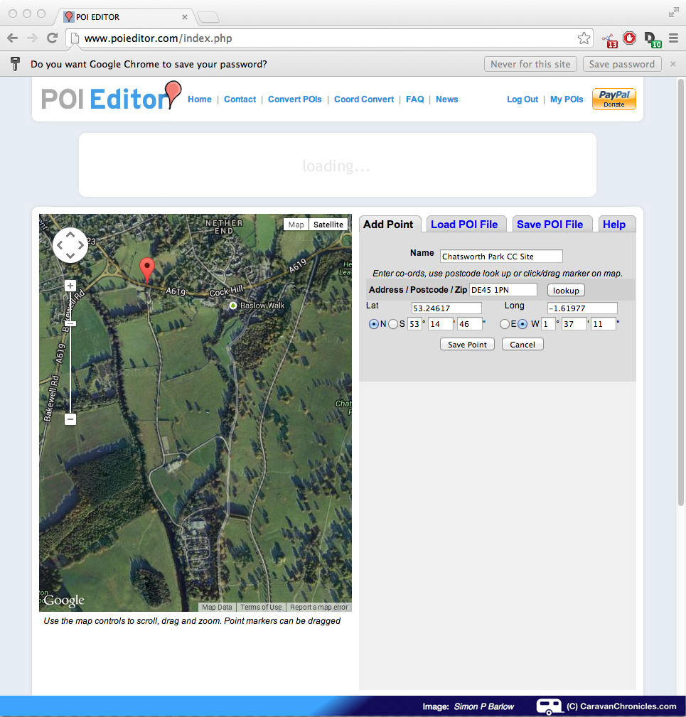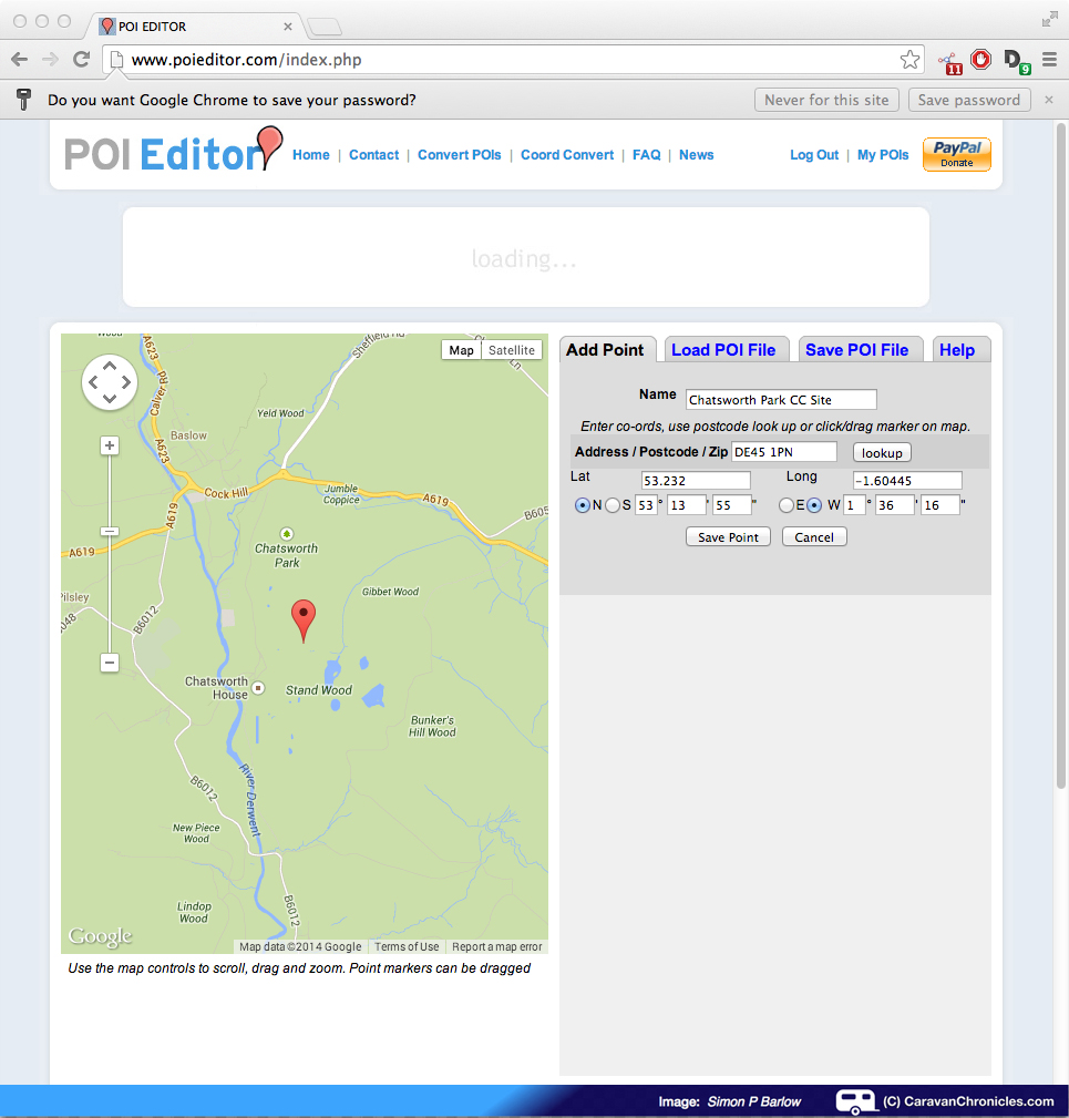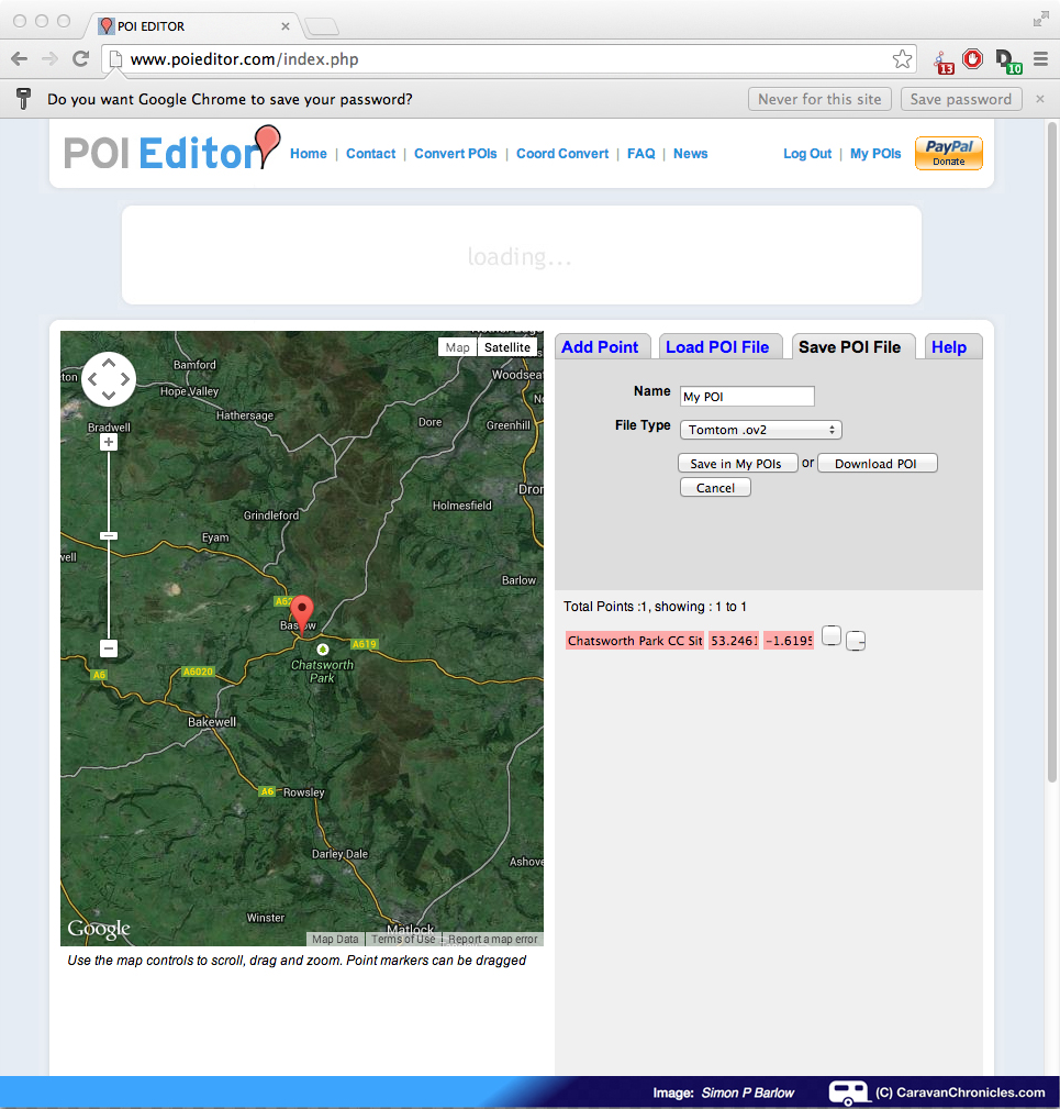 All the pre installed POI’s from the GPS show up and it makes it easy to have a mooch round the area from your desk when planning a route. I’m not going to go into too much detail about setting up your own POI’s (although they are really waypoints in Garmin’s world) or setting up Routs, tracks etc. I did find it really easy to follow Garmin’s on line video tutorial. However it took me a couple of go’s to get the information I wanted in the right fields.