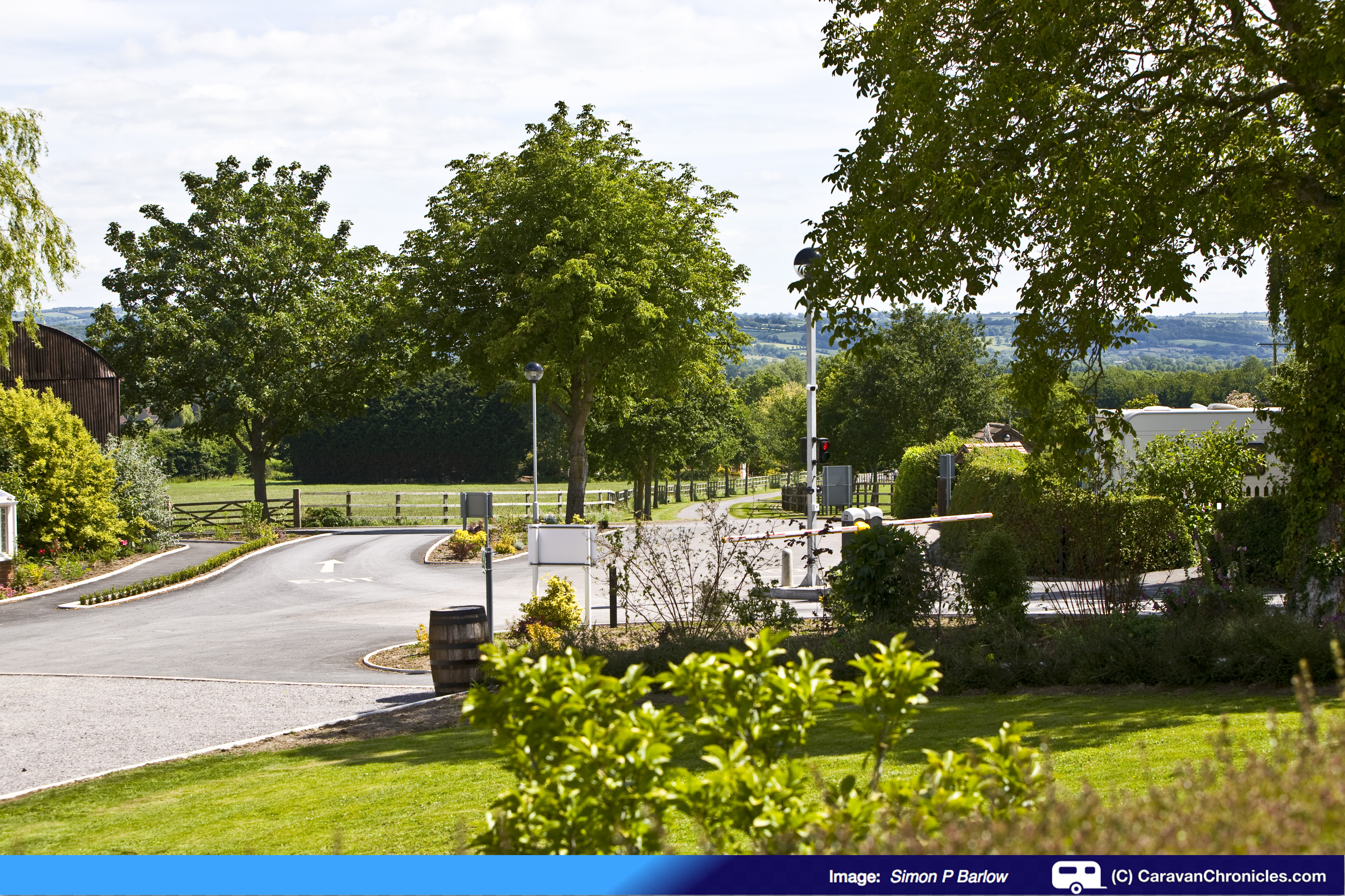 As we’d been able to pre-load the caravan we had chance to get an early start on the 215 mile run south down to The Old Oaks just outside Glastonbury. Generally we have been lucky with the traffic on all our trips and this today was no exception. The M6 was smooth flowing and after leaving the caravan storage facility at 7:45 we pulled into Stafford Services around 9:30 to collect a couple of take-out coffee’s from Costa and have a leg stretch. By 10:00 we were back on the M6 and the easy traffic meant we could fairly breeze along at 55 all the way down to Birmingham, only slowing down for the four lane high level sectioned roadworks just after the start of the M5. It had been on and off light rain all the way until we passed over the high level bridge at Avonmouth when blue cracks started to appear in the overcast. Having been down to Glastonbury when the festival was on several times before we noticed that the signs for festival traffic had changed slightly and there were more of them. Winding our way around the outskirts of Glastonbury, which was now in bright sunlight was almost second nature… to the point Sue was commenting on things that had grown in peoples gardens since we were last here. I finally pulled the handbrake on out side reception at 13:20…. a total time of just over 5 hours if you take off the 30 minutes stop at Stafford Services.