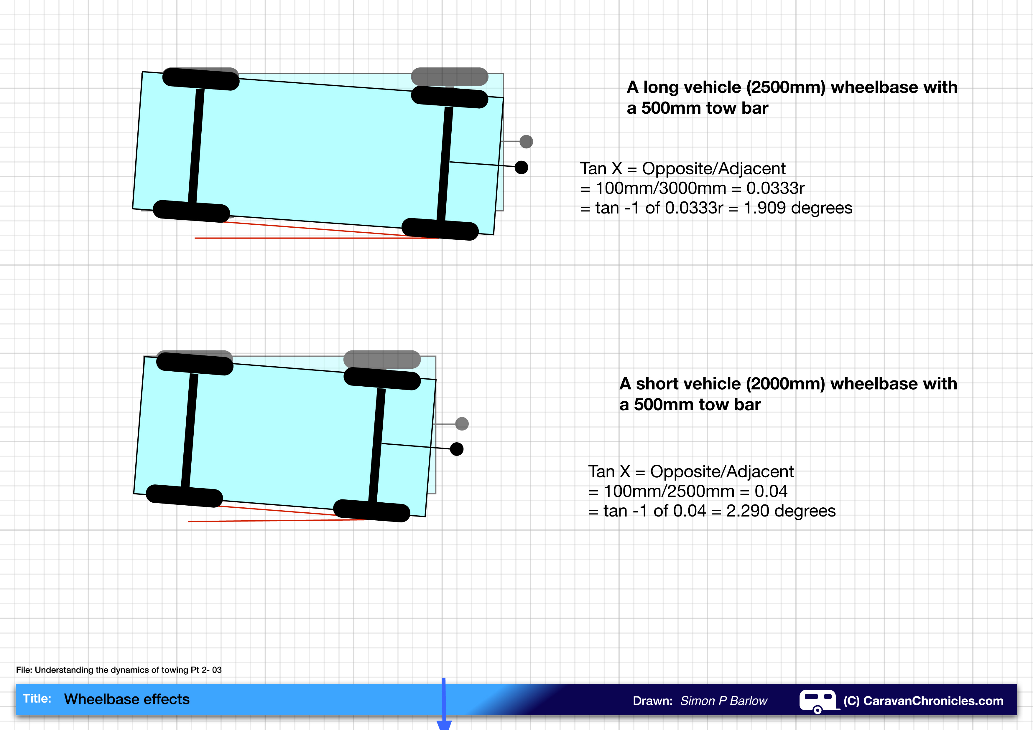 NOTE: The tow bar lengths quoted are to demonstrate the principle and are not related to any vehicles.
